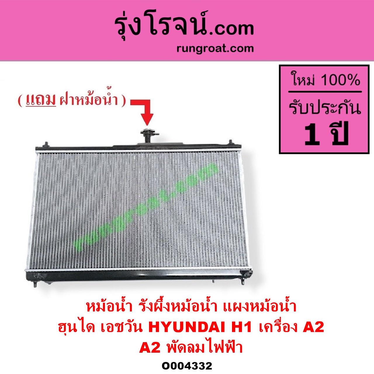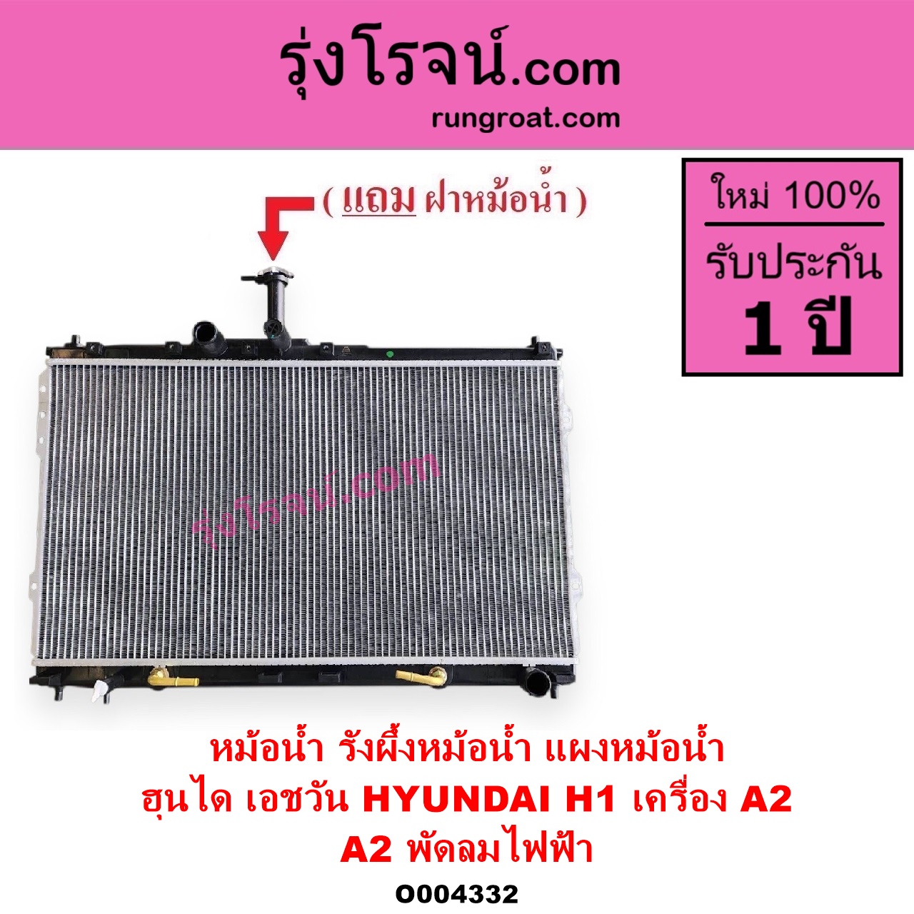 | O004332 | หม้อน้ำ (รังผึ้งหม้อน้ำ, แผงหม้อน้ำ) | HYUNDAI (ฮุนได) / H1 (เอชวัน) | เครื่อง A2 (A2 จะไม่มีฟรีปั๊ม) | ไต้หวัน (ใหม่) |