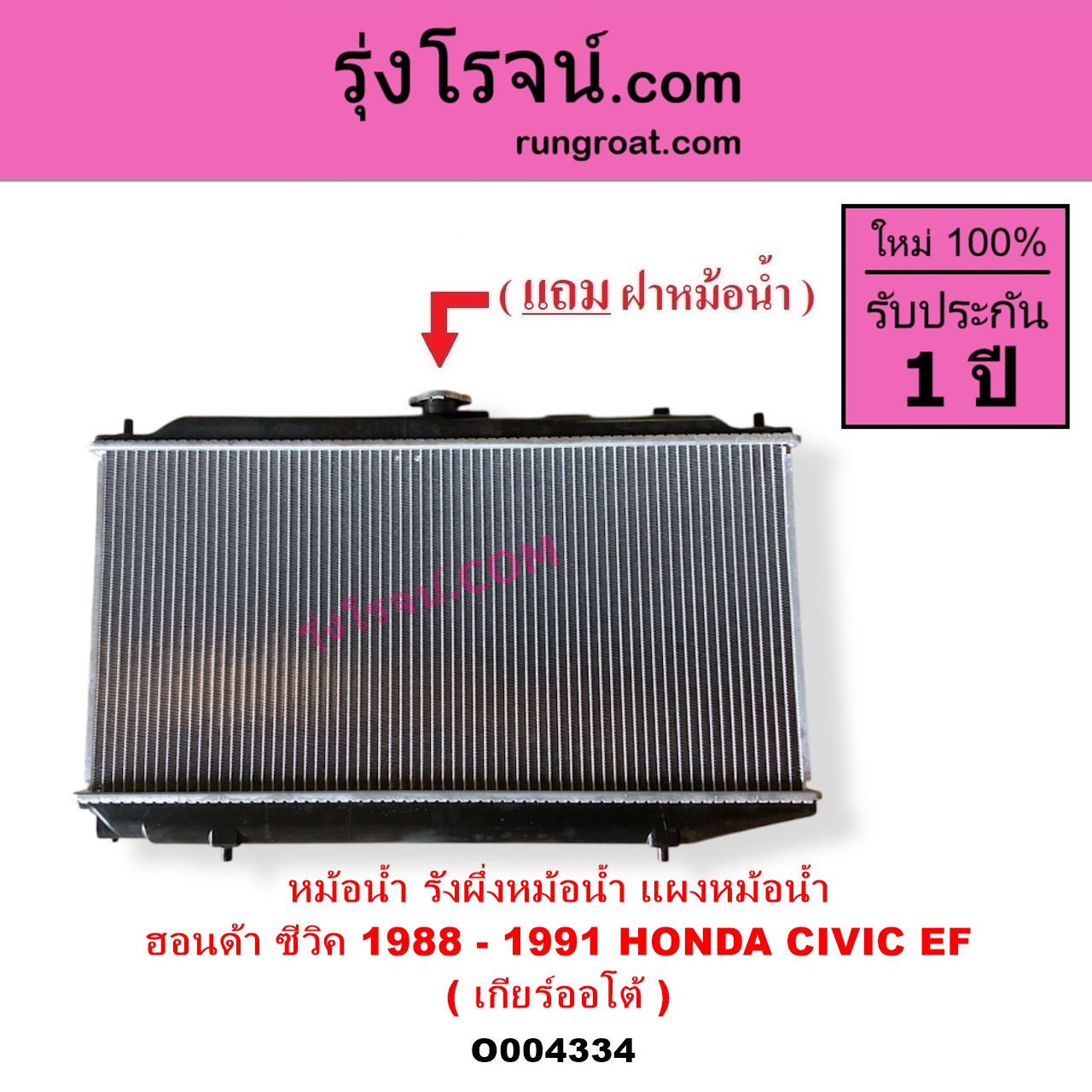 | O004334 | หม้อน้ำ (รังผึ้งหม้อน้ำ, แผงหม้อน้ำ) | HONDA (ฮอนด้า) / CIVIC (ซีวิค 1988 – 1991) (เตารีด) (EF) | เกียร์ออโต้ | ไต้หวัน (ใหม่) |