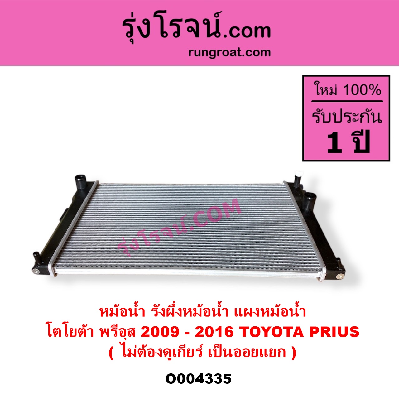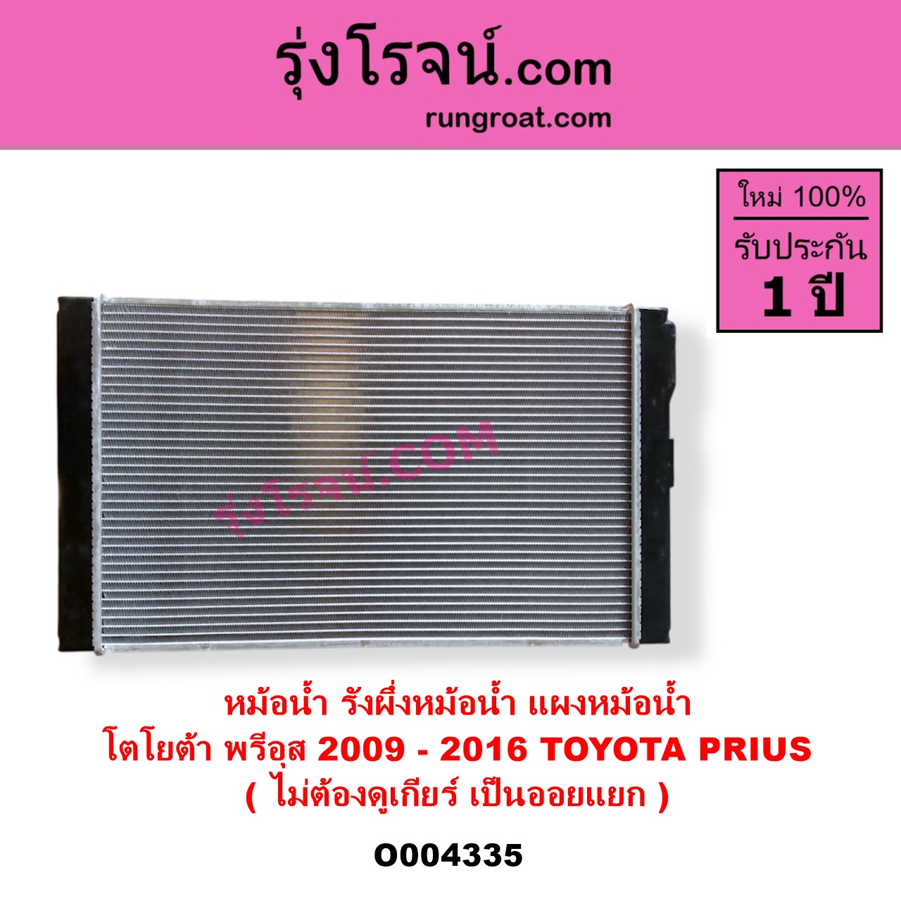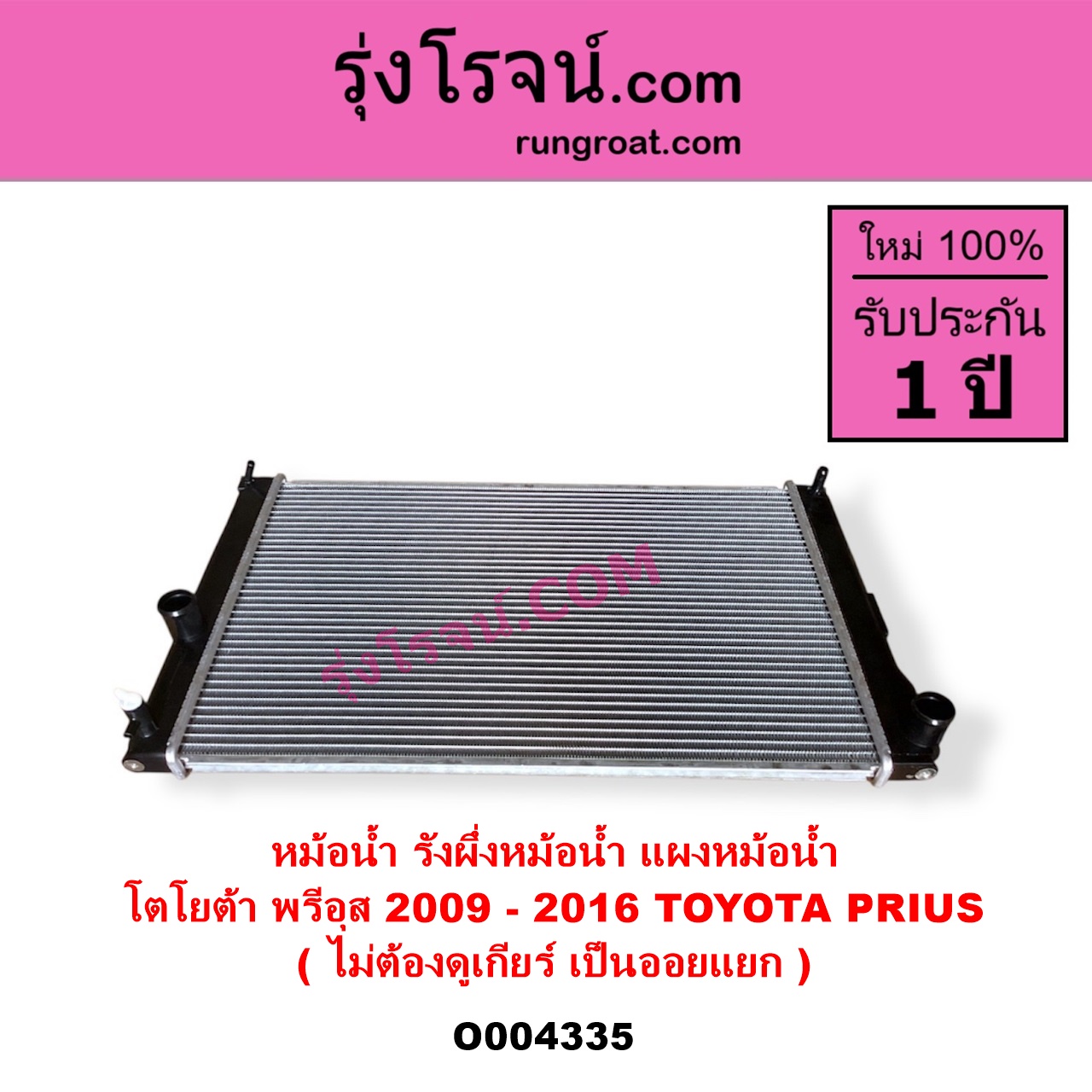 | O004335 | หม้อน้ำ (รังผึ้งหม้อน้ำ, แผงหม้อน้ำ) | TOYOTA (โตโยต้า) / PRIUS (พรีอุส 2009 – 2016) | ไม่ต้องดูเกียร์ เป็นออยแยก | ไต้หวัน (ใหม่) |