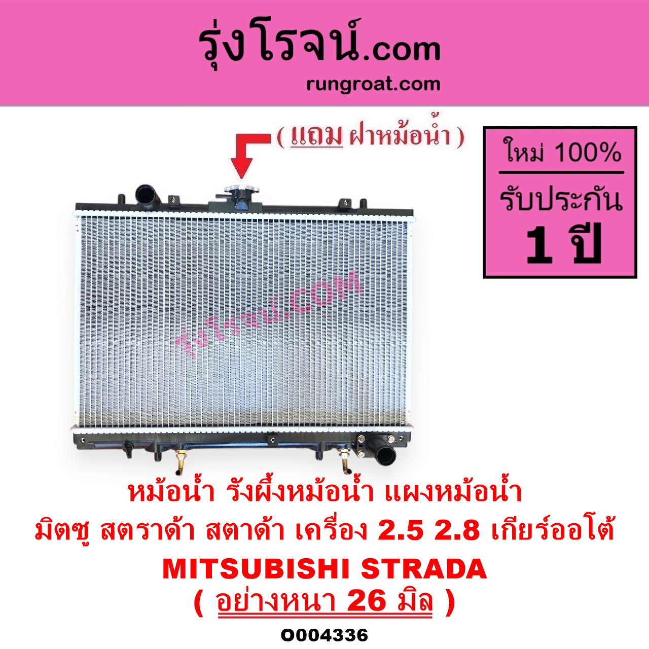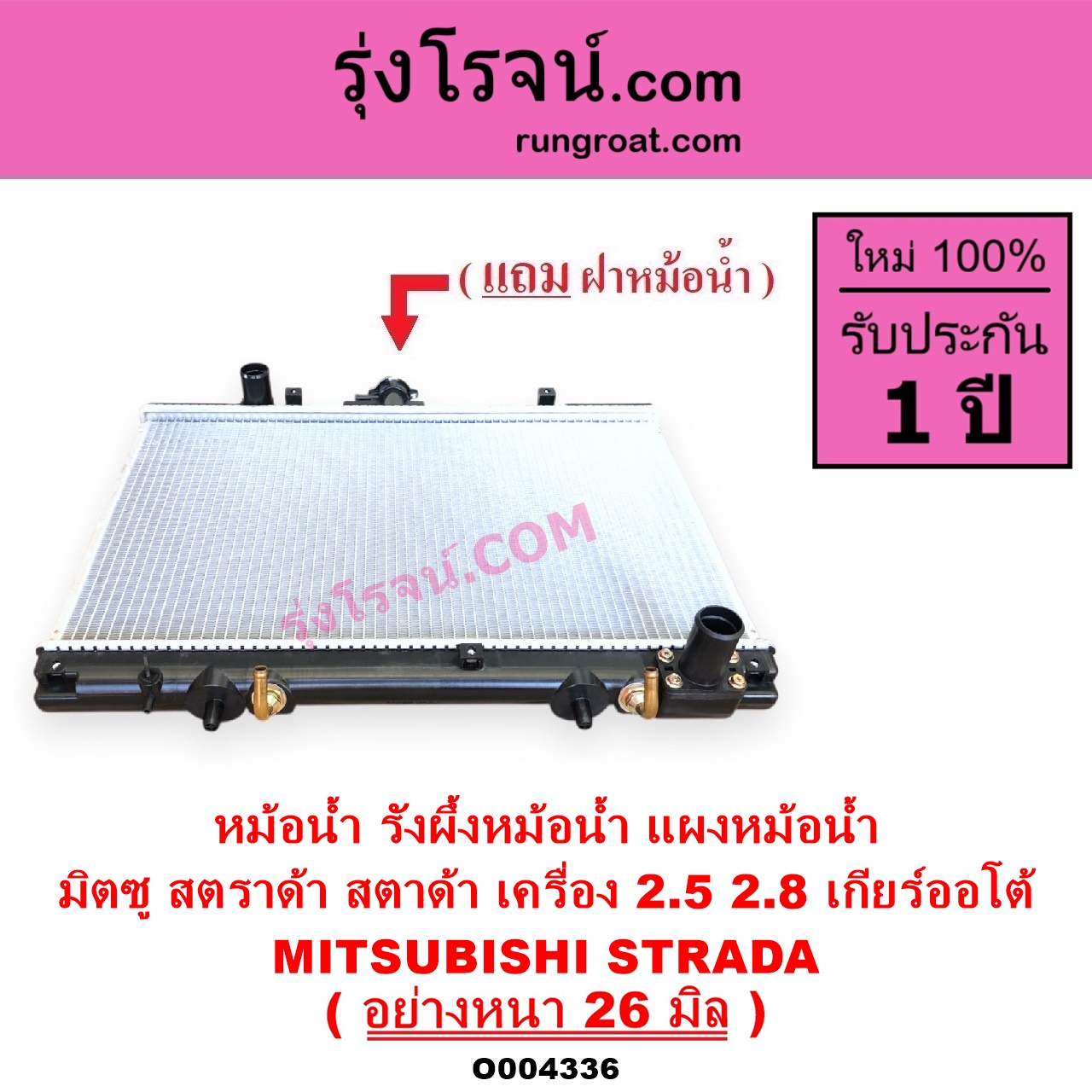 | O004336 | หม้อน้ำ (รังผึ้งหม้อน้ำ, แผงหม้อน้ำ) | MITSUBISHI (มิตซู) / STRADA (สตราด้า สตาด้า 1997 – 2005) | เกียร์ออโต้ (เครื่อง 2800 ใส่ 2500 ได้) (หนา26 มิล) | ไต้หวัน (ใหม่) |