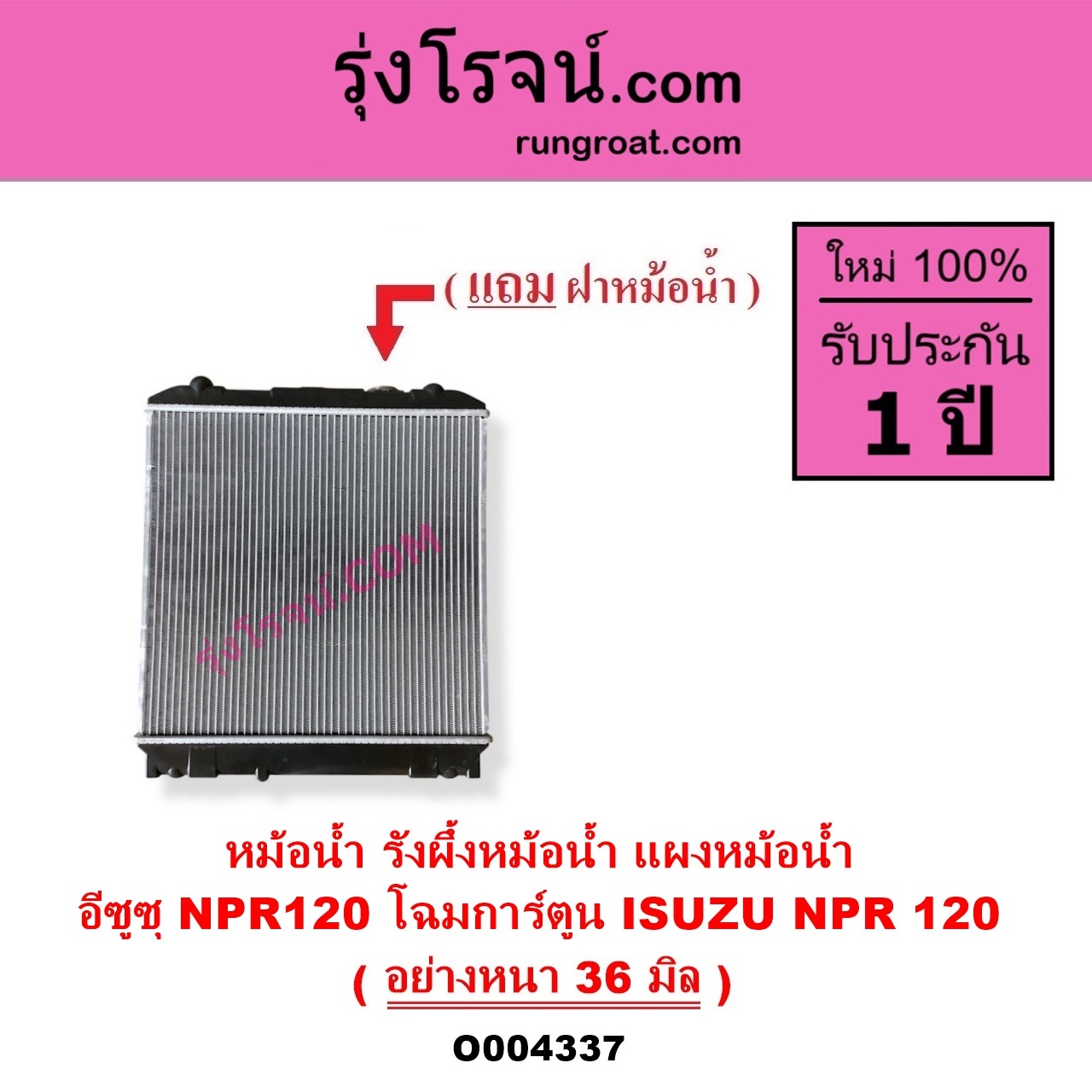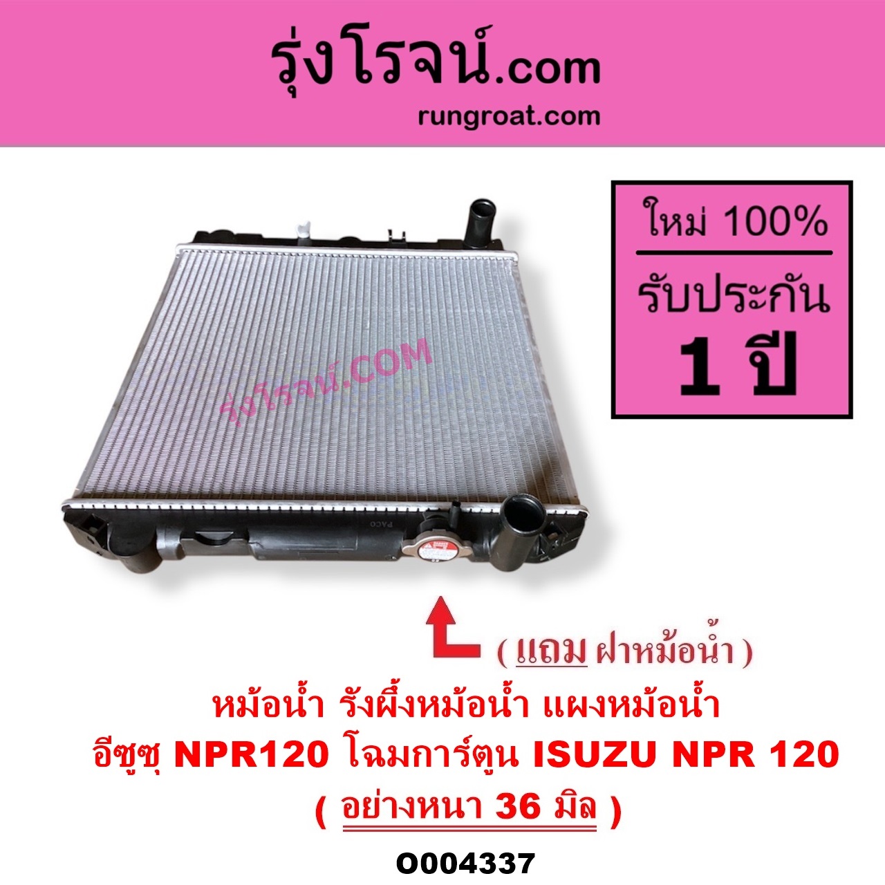 O004337 หม้อน้ำ รังผึ้งหม้อน้ำ แผงหม้อน้ำ ISUZU อีซูซุ NPR NQR เอ็นพีอาร์ เอ็นคิวอาร์ NPR120 โฉมการ์ตูน อย่างหนา 36 มิล