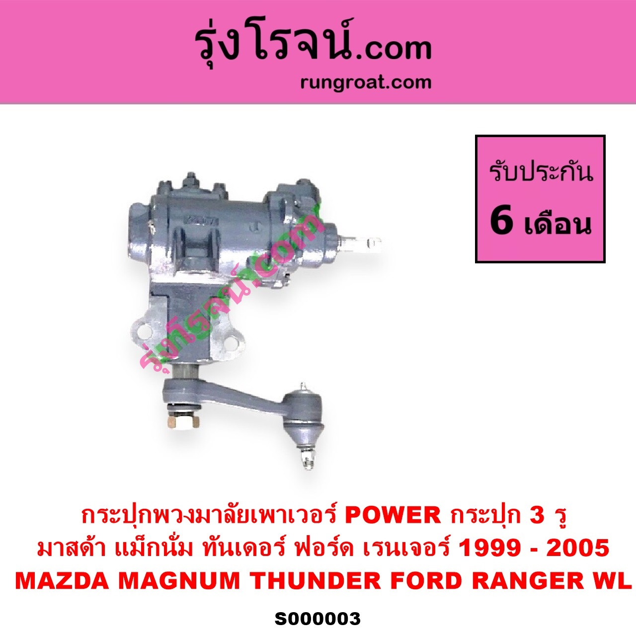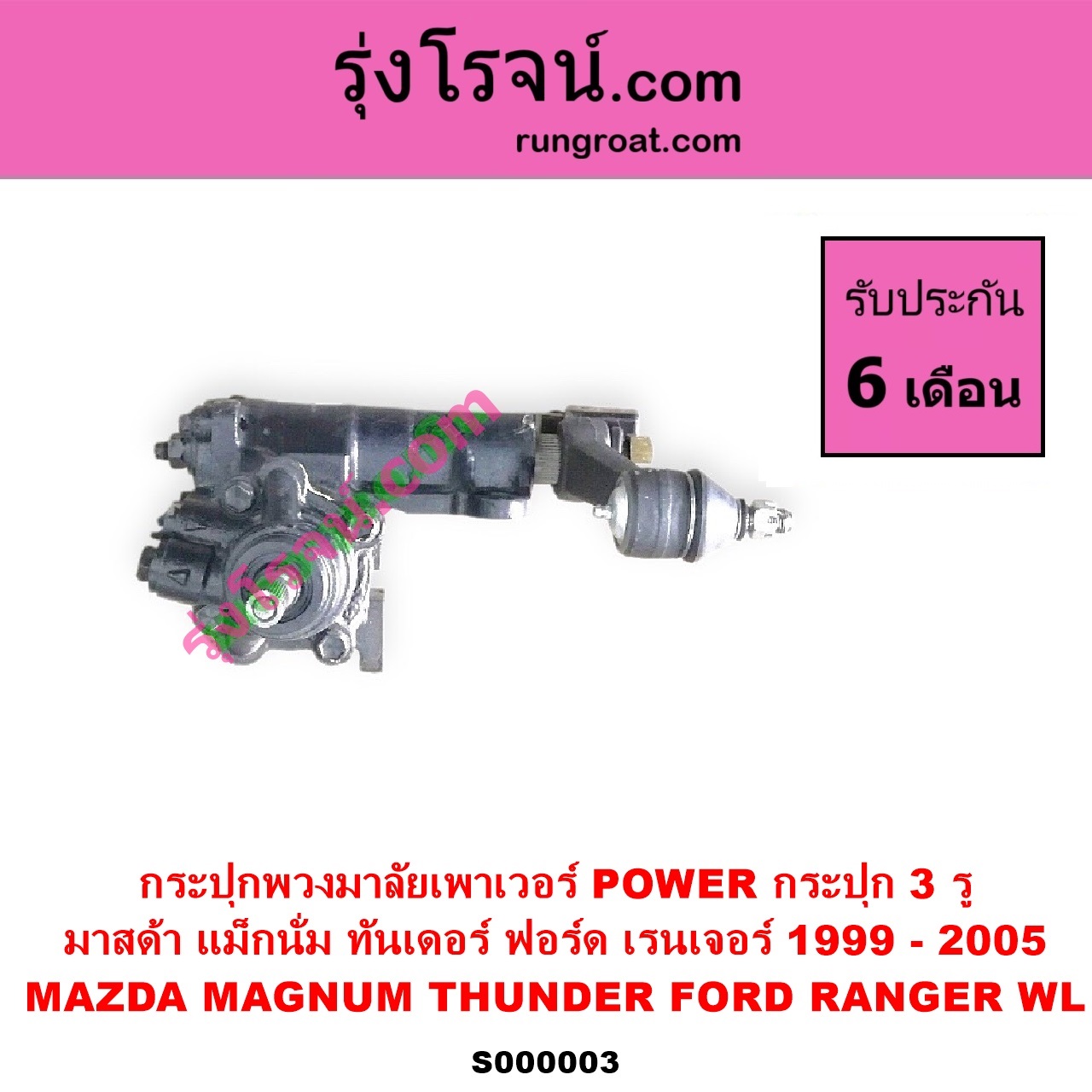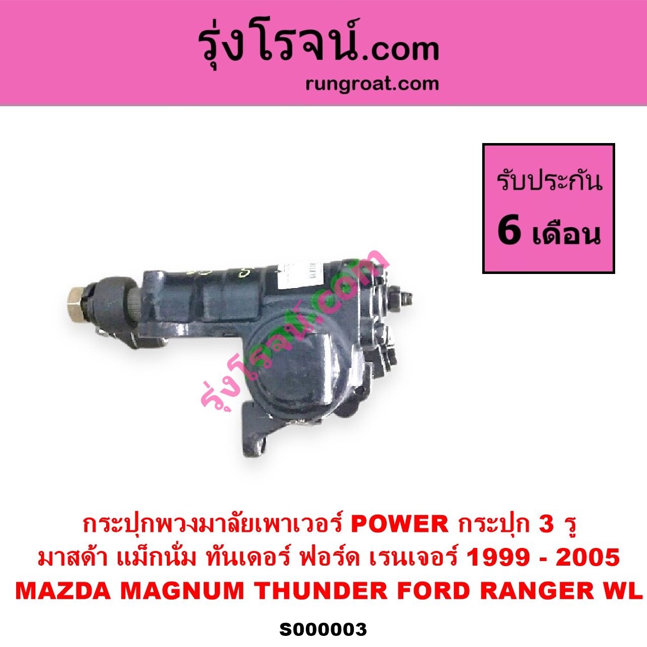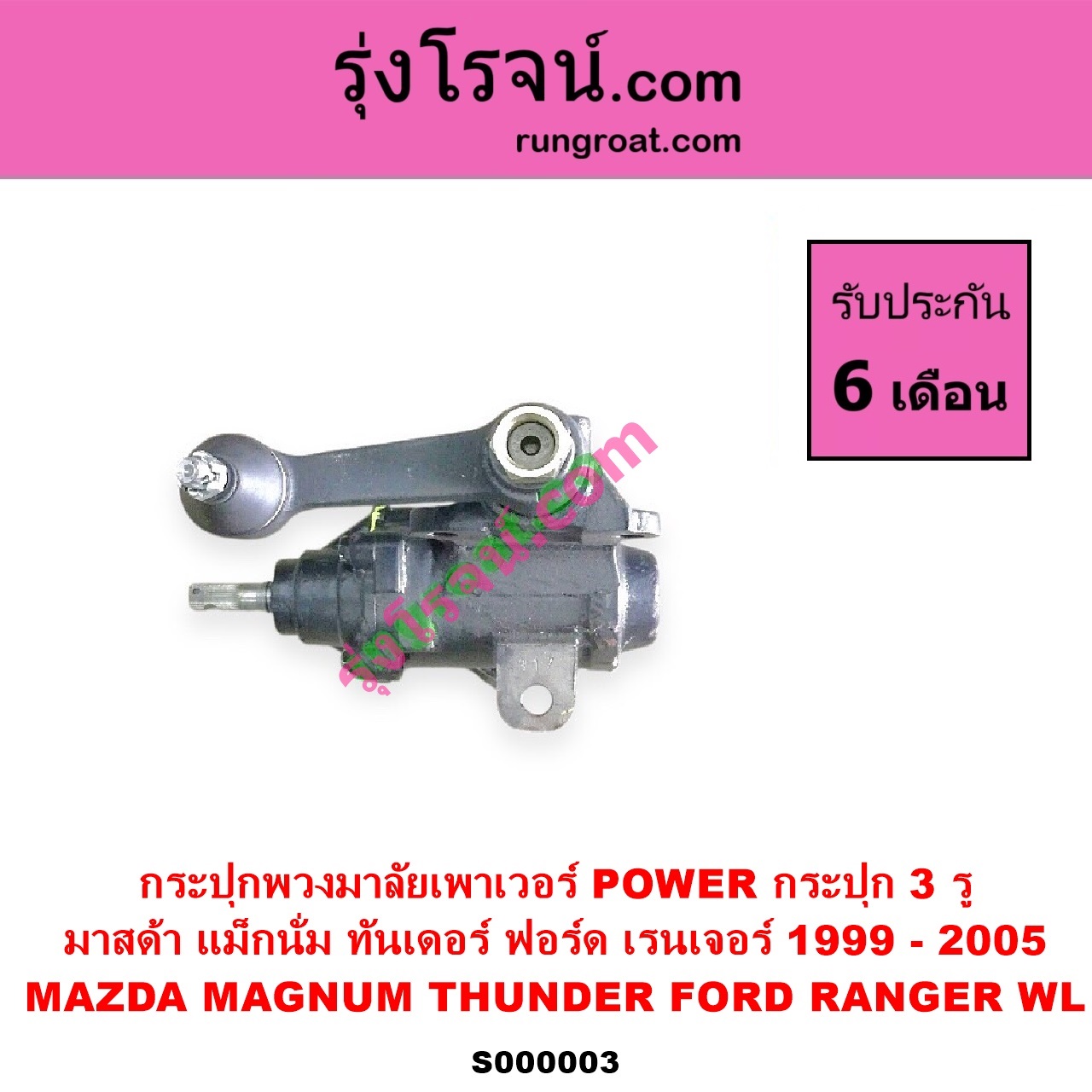 | S000003 | กระปุกพวงมาลัยเพาเวอร์ (POWER) | FORD (ฟอร์ด) / RANGER (เรนเจอร์ 1999 – 2005) (รุ่นแรก WL 12 วาล์ว) , MAZDA (มาสด้า) / MAGNUM / THUNDER (แม็กนั่ม / ทันเดอร์) (มาสด้า B2000 B2200 B2500) |