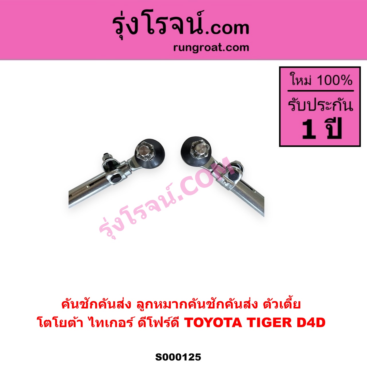 | S000125 | คันชักคันส่ง (ลูกหมากคันชักคันส่ง) | TOYOTA (โตโยต้า) / TIGER/TIGER D4D (ไทเกอร์ / ไทเกอร์ ดีโฟร์ดี) | ตัวเตี้ย | ไต้หวัน (ใหม่) |