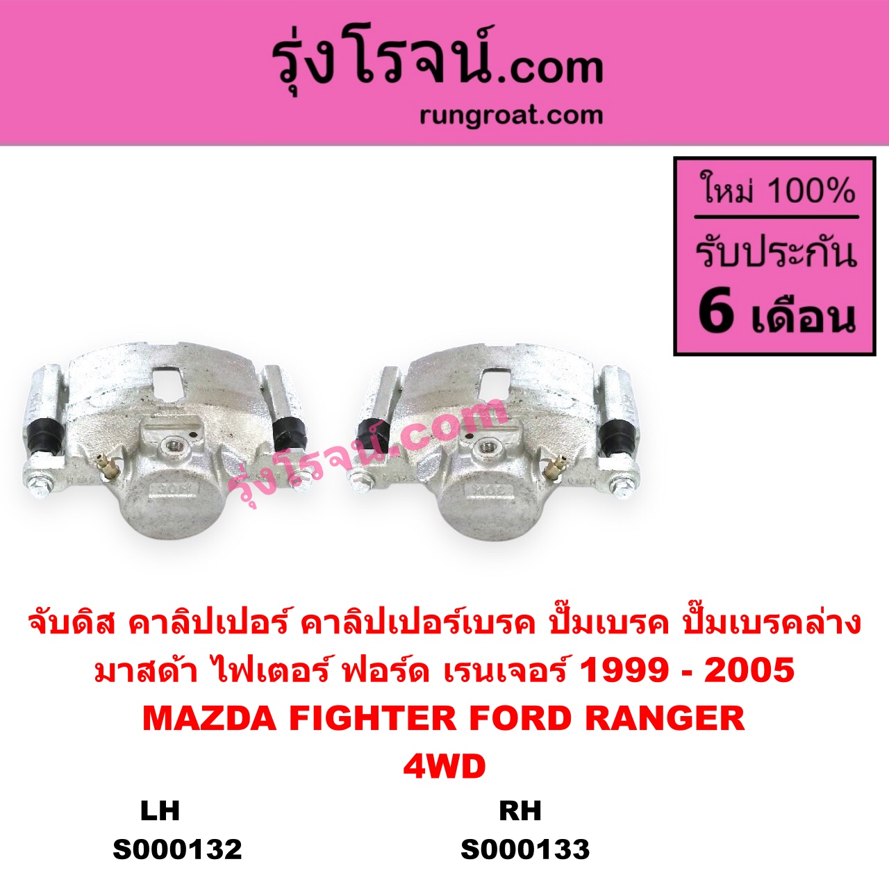 S000132 จับดิส (คาลิปเปอร์, คาลิปเปอร์เบรค, ปั๊มเบรค, ปั๊มเบรคล่าง) FORD ฟอร์ด RANGER เรนเจอร์ 1999 – 2005 รุ่นแรก WL 12 วาล์ว MAZDA มาสด้า FIGHTER ไฟเตอร์ 1997 – 2005 4WD LH
