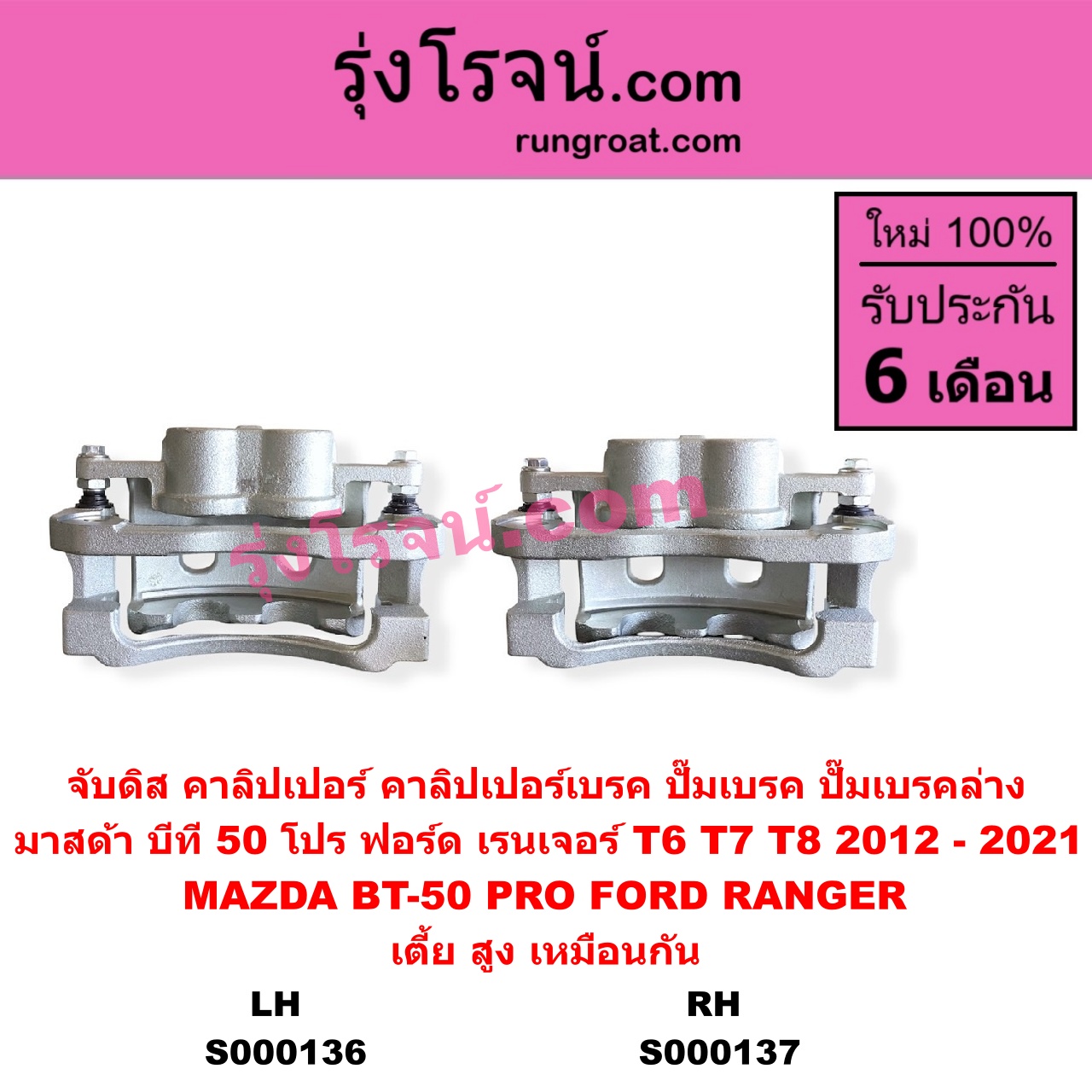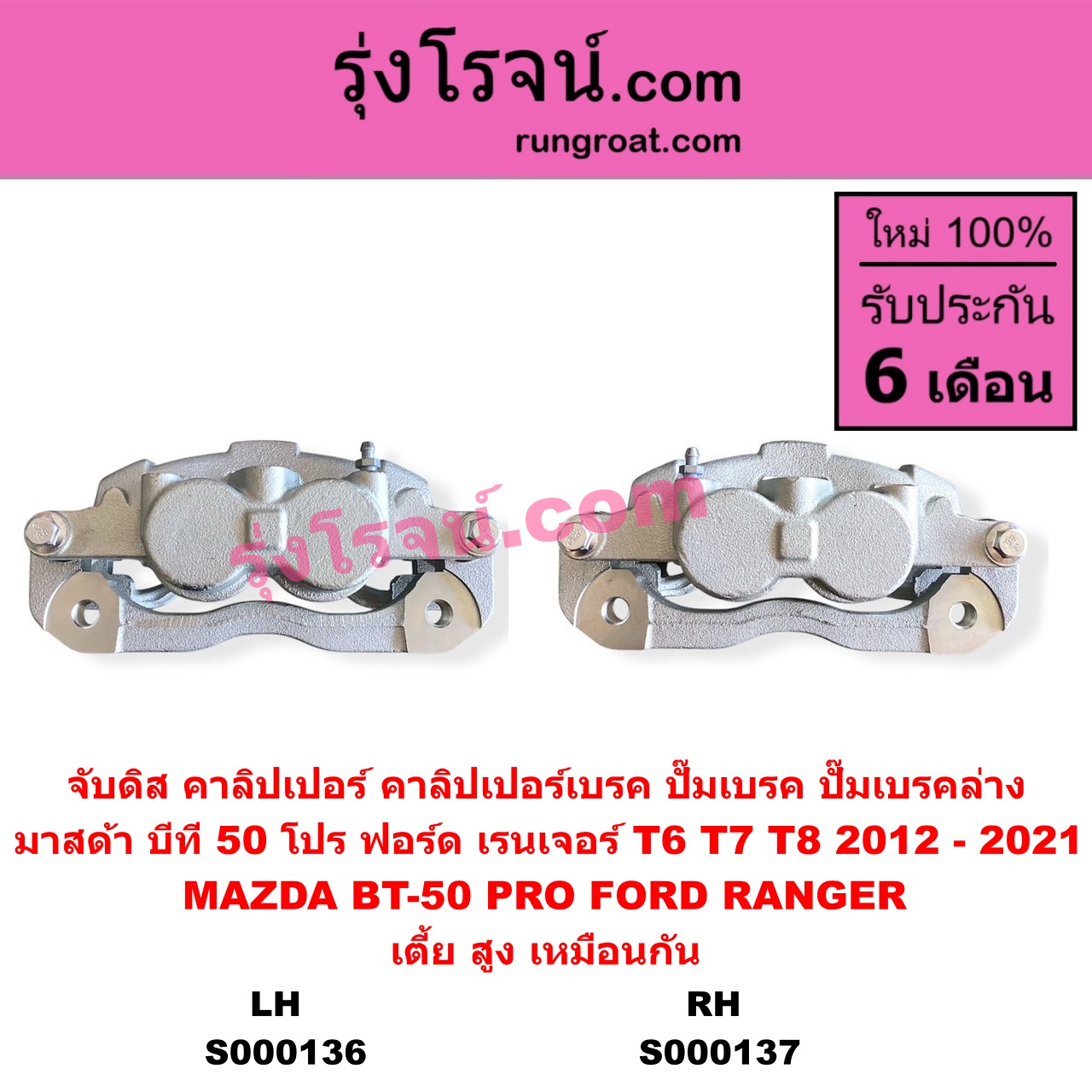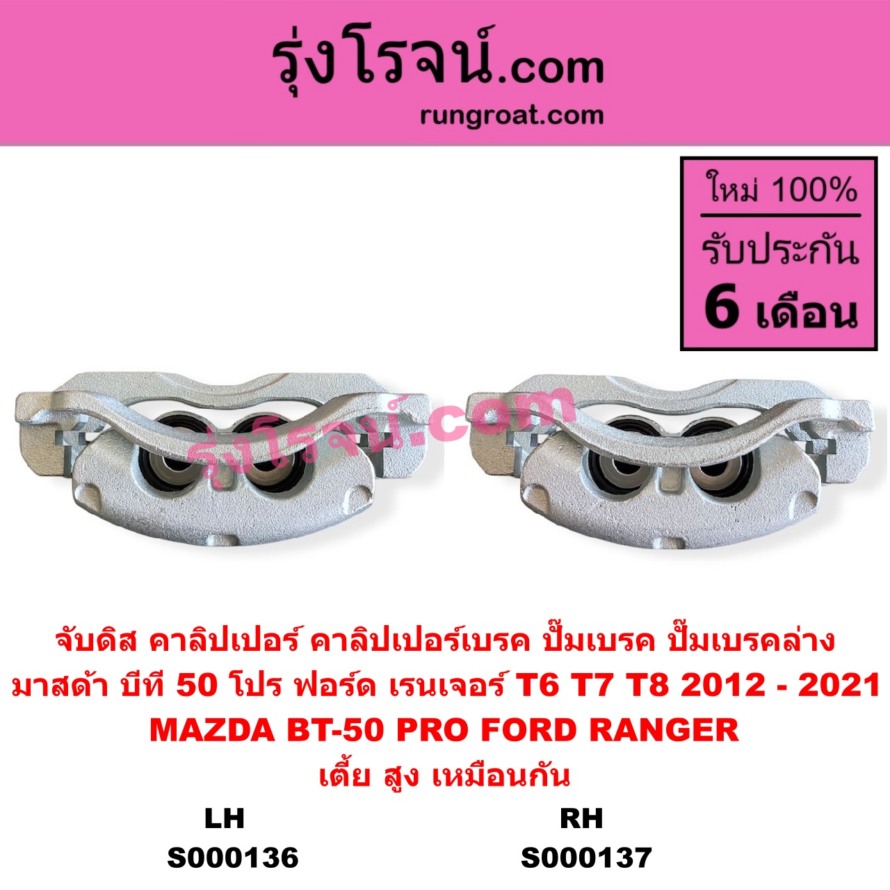 | S000136 | จับดิส (คาลิปเปอร์, คาลิปเปอร์เบรค, ปั๊มเบรค, ปั๊มเบรคล่าง) | FORD (ฟอร์ด) / RANGER (เรนเจอร์ T6 T7 T8 2012 – 2021) (ไวล์ดแทรค แร็ปเตอร์ WILD TRAK RAPTOR) , MAZDA (มาสด้า) / BT-50 PRO (บีที 50 โปร 2012 – 2020) |