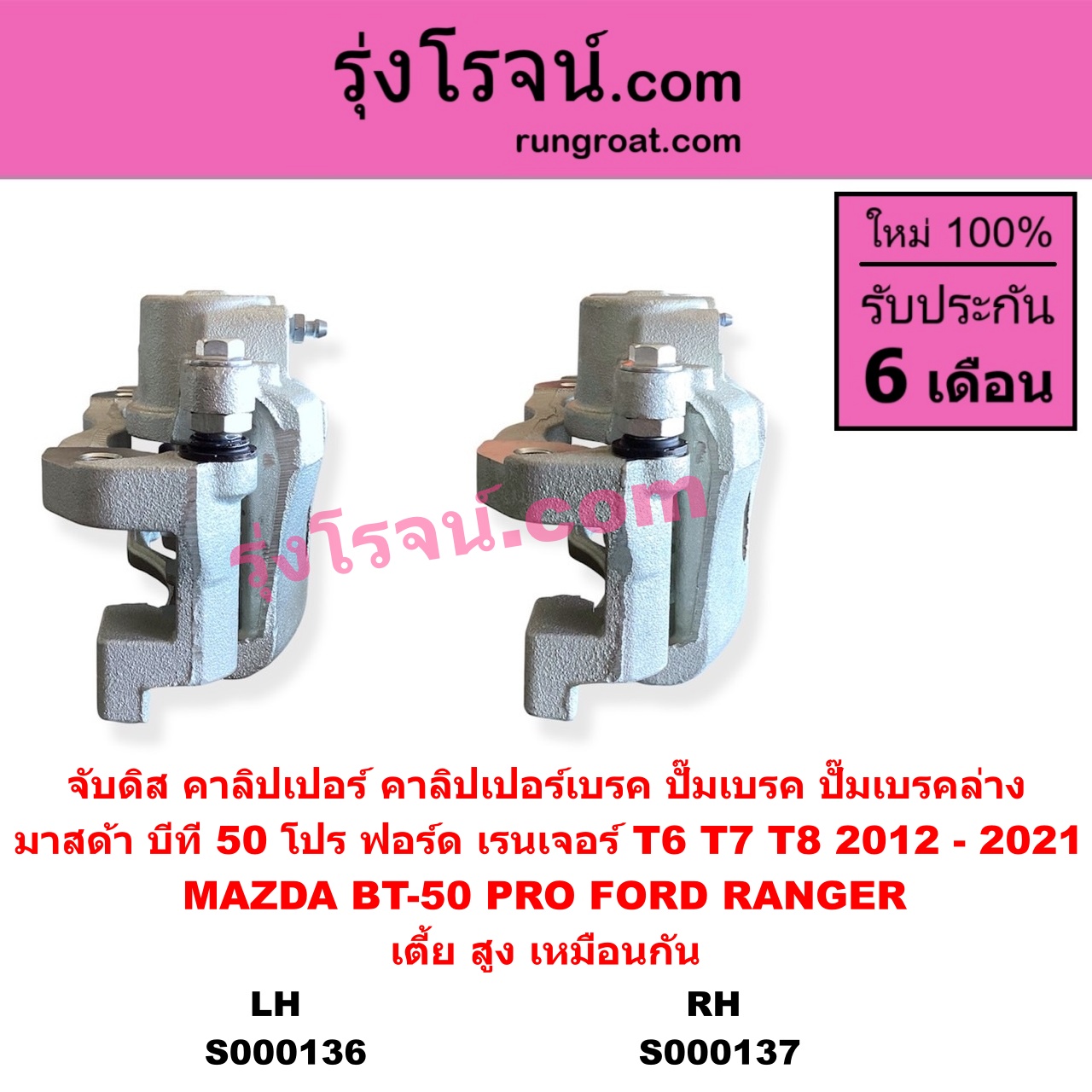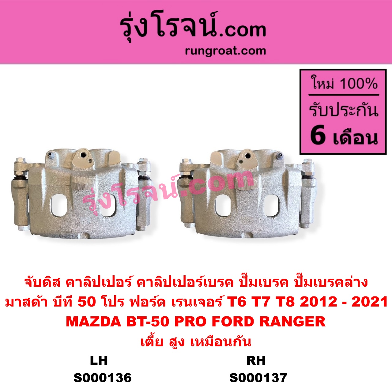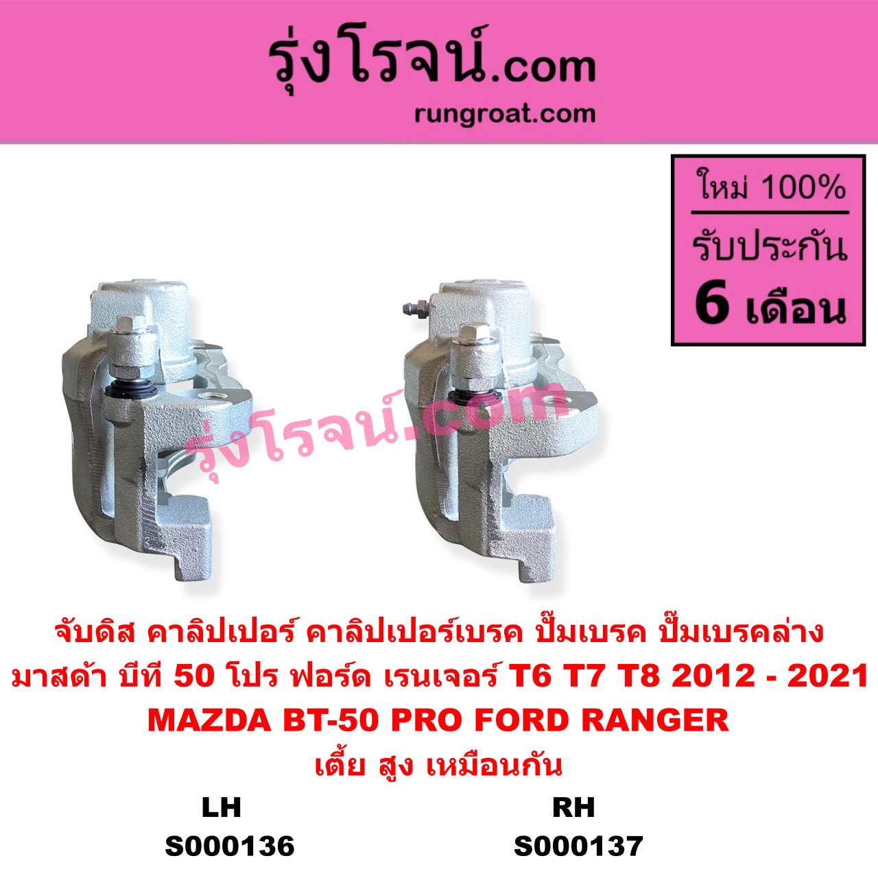 | S000136 | จับดิส (คาลิปเปอร์, คาลิปเปอร์เบรค, ปั๊มเบรค, ปั๊มเบรคล่าง) | FORD (ฟอร์ด) / RANGER (เรนเจอร์ T6 T7 T8 2012 – 2021) (ไวล์ดแทรค แร็ปเตอร์ WILD TRAK RAPTOR) , MAZDA (มาสด้า) / BT-50 PRO (บีที 50 โปร 2012 – 2020) |