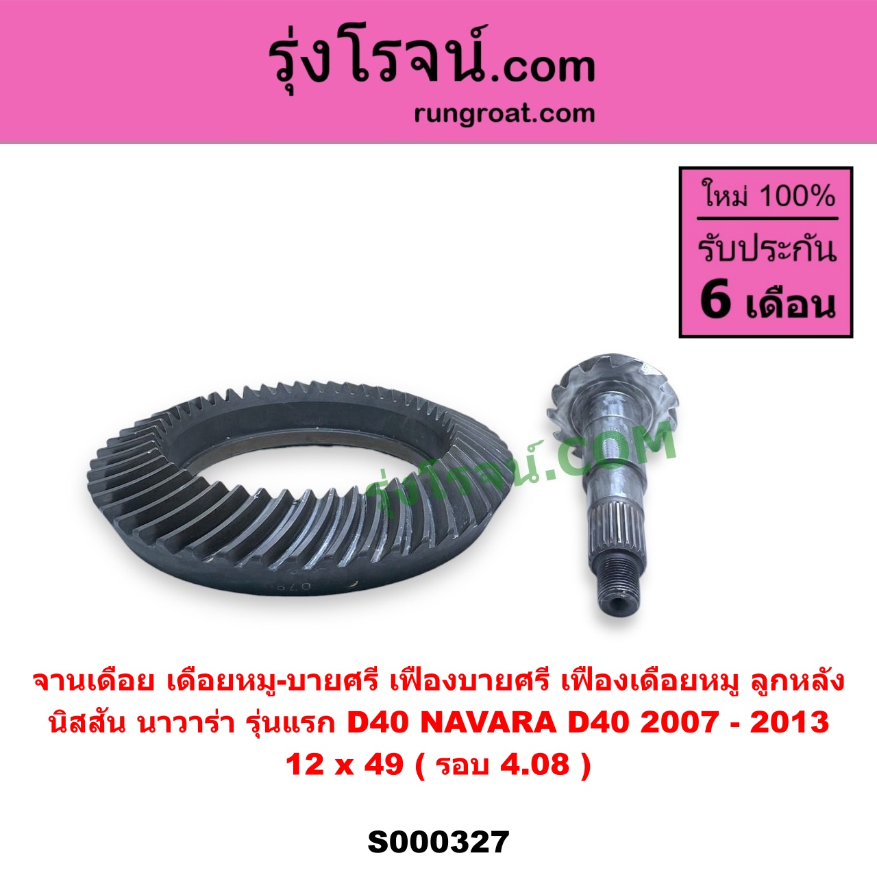 | S000327 | จานเดือย (เดือยหมู-บายศรี, เฟืองบายศรี เฟืองเดือยหมู) | NISSAN (นิสสัน) / NAVARA (นาวาร่า D40 2007 – 2013) (รุ่นแรก D40) | 12 x 49 (รอบ 4.08) | ไต้หวัน (ใหม่) |