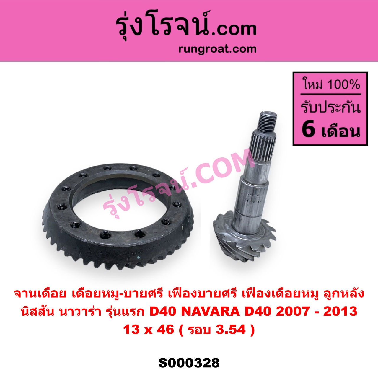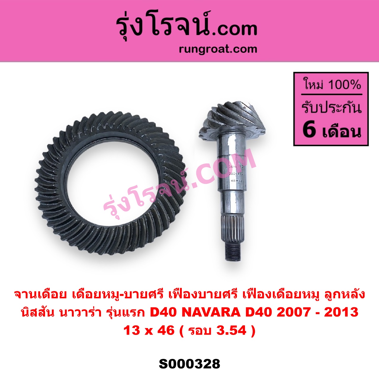 | S000328 | จานเดือย (เดือยหมู-บายศรี, เฟืองบายศรี เฟืองเดือยหมู) | NISSAN (นิสสัน) / NAVARA (นาวาร่า D40 2007 – 2013) (รุ่นแรก D40) | 13 x 46 (รอบ 3.54) | ไต้หวัน (ใหม่) |