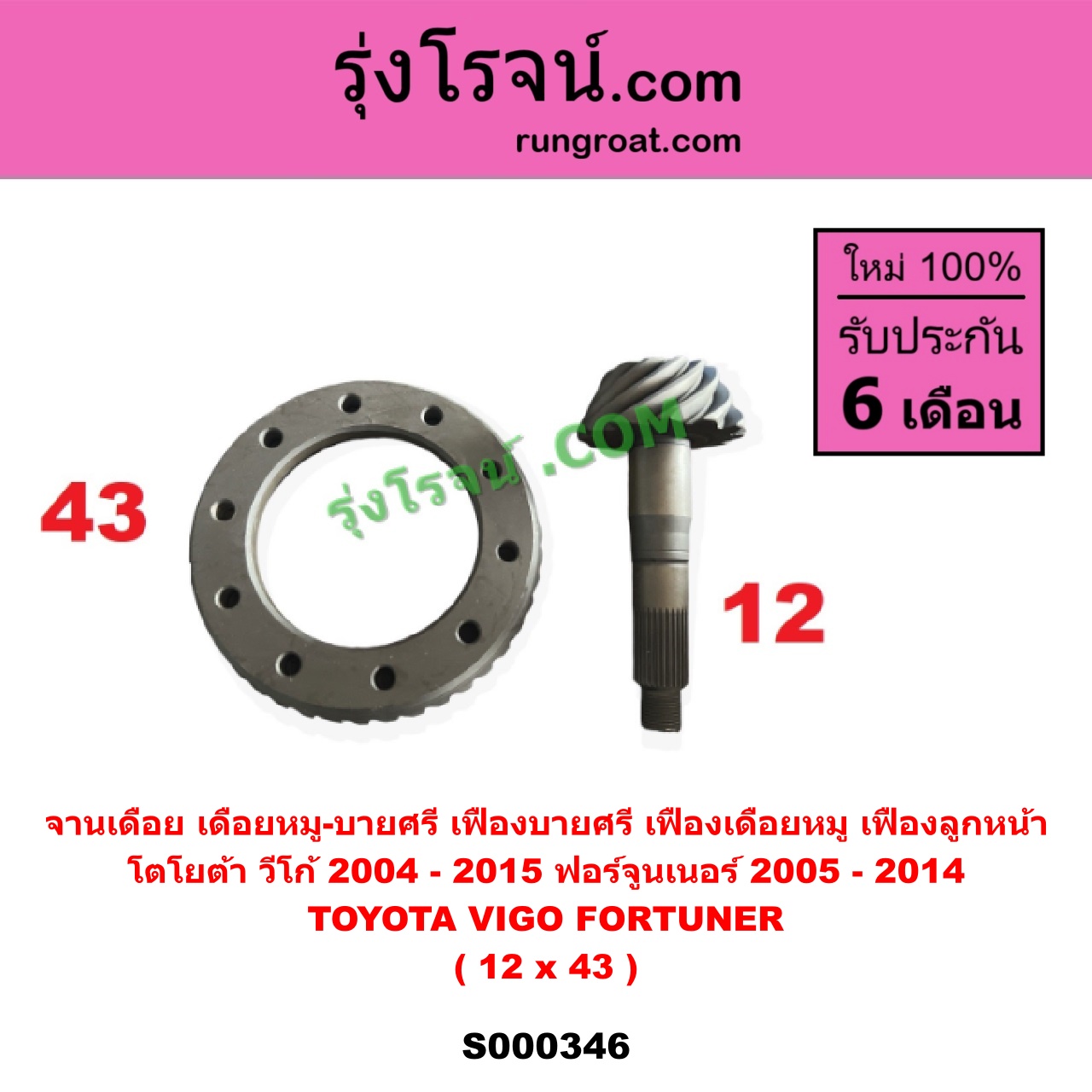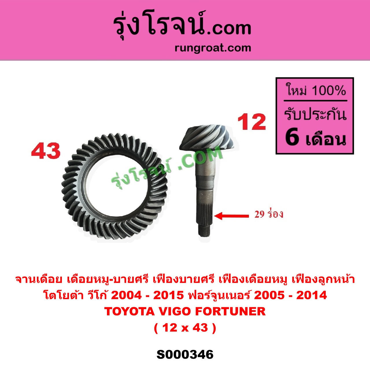 | S000346 | จานเดือย (เดือยหมู-บายศรี, เฟืองบายศรี เฟืองเดือยหมู) | TOYOTA (โตโยต้า) / FORTUNER (ฟอร์จูนเนอร์ 2005 – 2014) (รุ่นแรก) , TOYOTA (โตโยต้า) / VIGO (วีโก้ 2004 – 2015) |