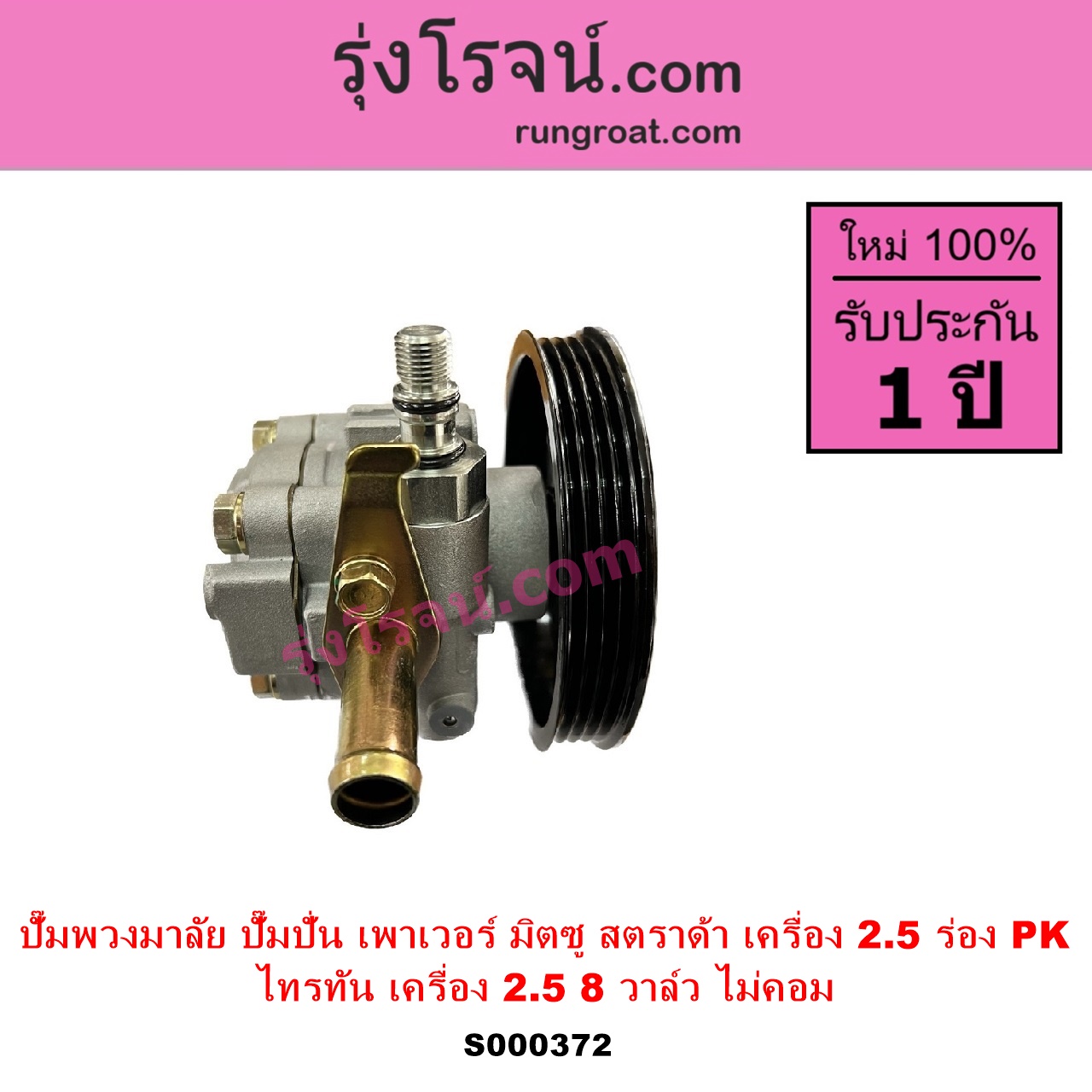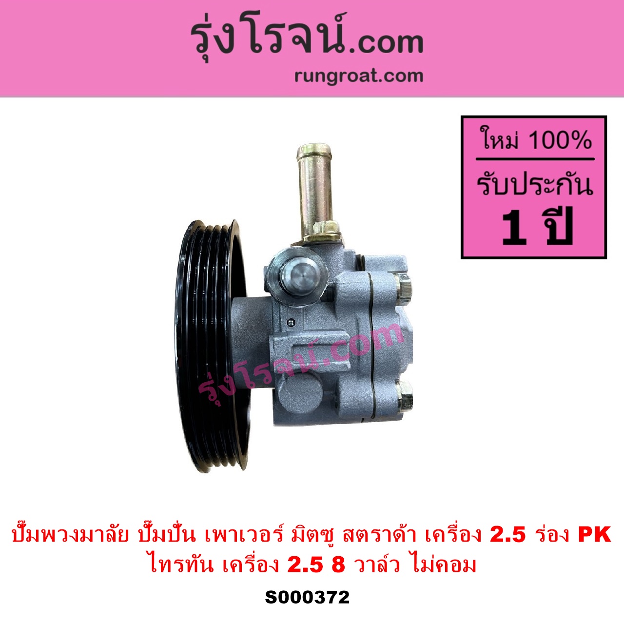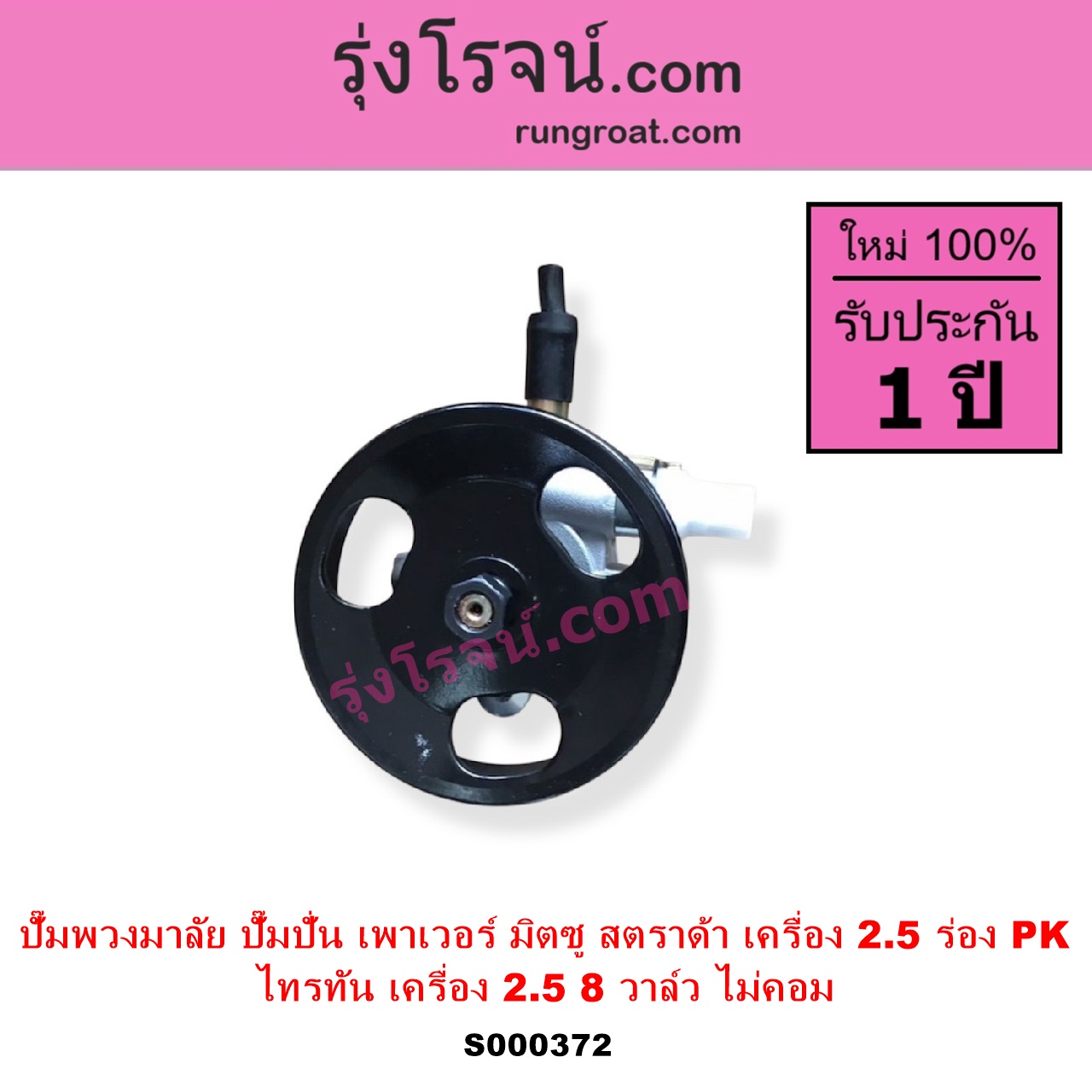 | S000372 | ปั๊มปั่นเพาเวอร์ (ปั๊มพวงมาลัย ตัวปั่น เพาเวอร์) | MITSUBISHI (มิตซู) / STRADA (สตราด้า สตาด้า 1997 – 2005) , MITSUBISHI (มิตซู) / TRITON (ไทรทัน ไตตั้น 2005 – 2014 PLUS) (รุ่นแรก) |