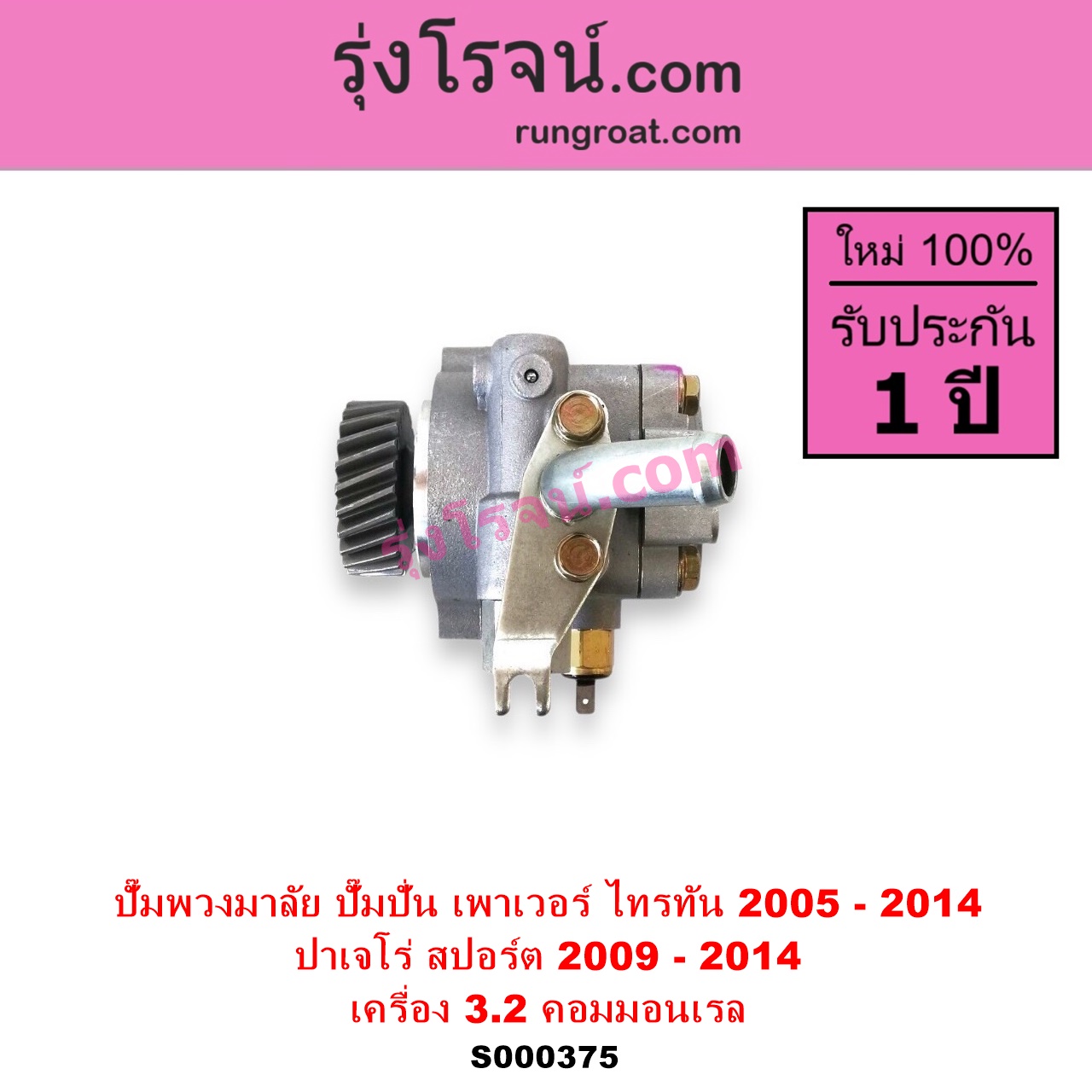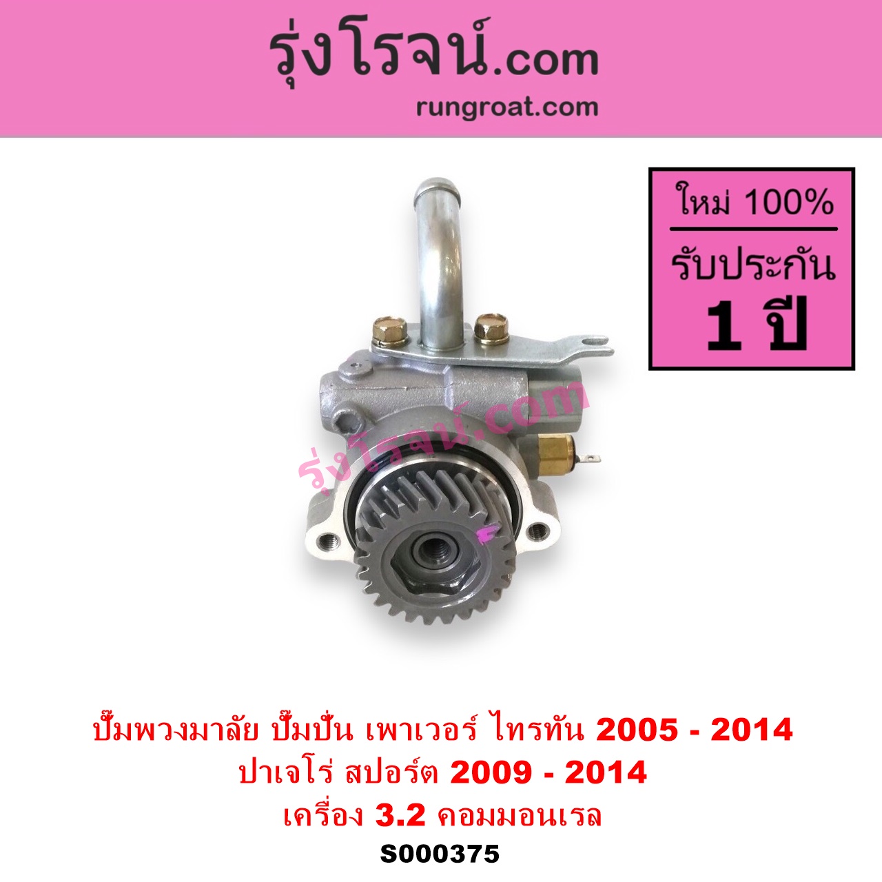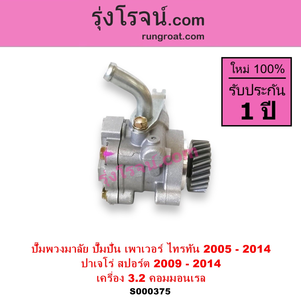 | S000375 | ปั๊มปั่นเพาเวอร์ (ปั๊มพวงมาลัย ตัวปั่น เพาเวอร์) | MITSUBISHI (มิตซู) / PAJERO SPORT (ปาเจโร่ สปอร์ต 2009 – 2014) (รุ่นแรก) , MITSUBISHI (มิตซู) / TRITON (ไทรทัน ไตตั้น 2005 – 2014 PLUS) (รุ่นแรก) |