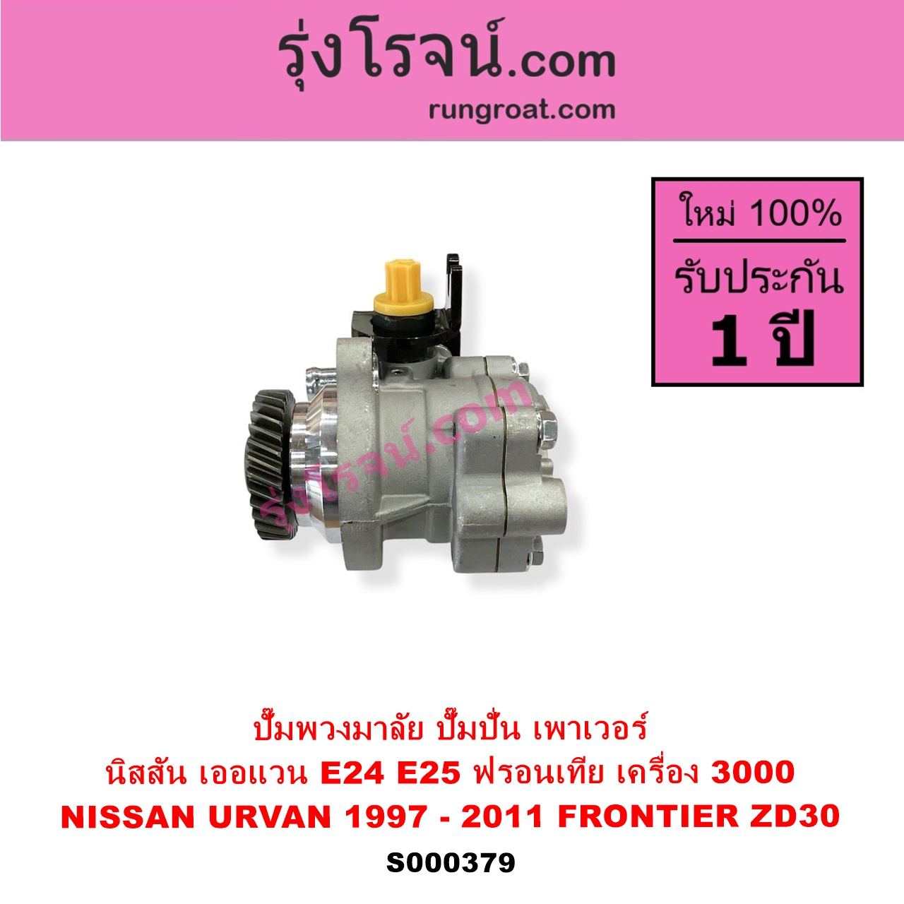 | S000379 | ปั๊มปั่นเพาเวอร์ (ปั๊มพวงมาลัย ตัวปั่น เพาเวอร์) | NISSAN (นิสสัน) / FRONTIER (ฟรอนเทีย 1998 – 2006) , NISSAN (นิสสัน) / URVAN (เออแวน E24 1997 – 2000) , NISSAN (นิสสัน) / URVAN (เออแวน E25 2001 – 2011) |
