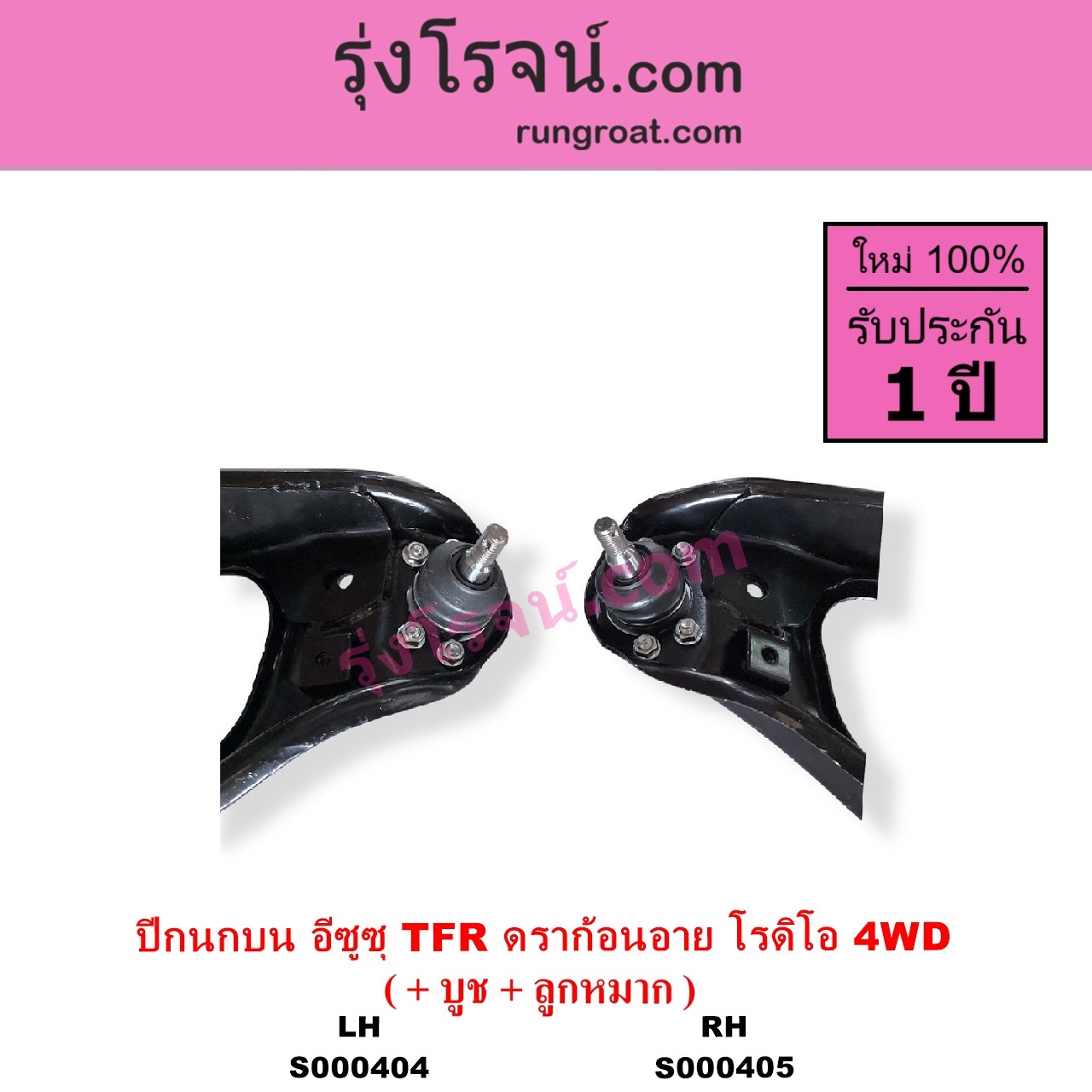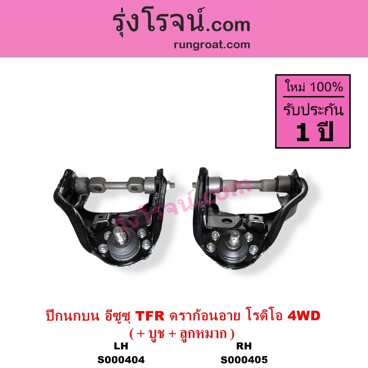 | S000404 | ปีกนกบน (+ บูท + ลูกหมาก) | ISUZU (อีซูซุ) / DRAGON EYE (ดราก้อน อาย) (TFR 1997 – 2002) , ISUZU (อีซูซุ) / RODEO (โรดิโอ) , ISUZU (อีซูซุ) / TFR (มังกรทอง 1988 – 1996) |