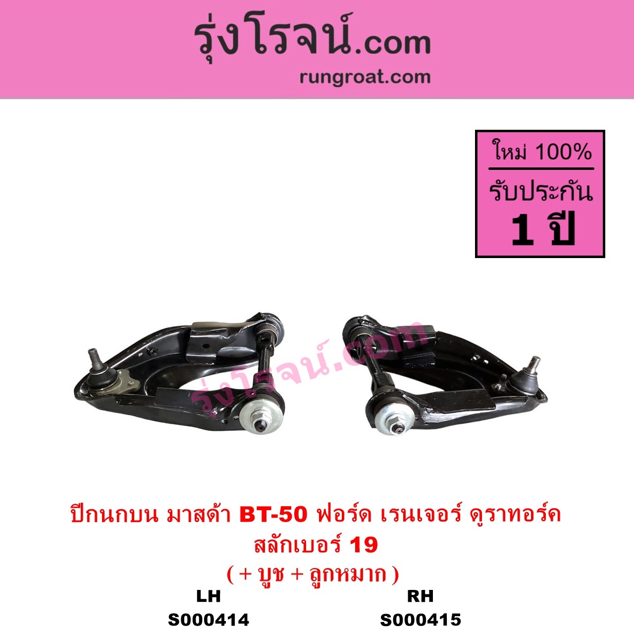 | S000414 | ปีกนกบน (+ บูท + ลูกหมาก) | FORD (ฟอร์ด) / RANGER (เรนเจอร์ ดูราทอร์ค 2006 – 2011) (รุ่น 2) , MAZDA (มาสด้า) / BT-50 (บีที 50 06/09) |