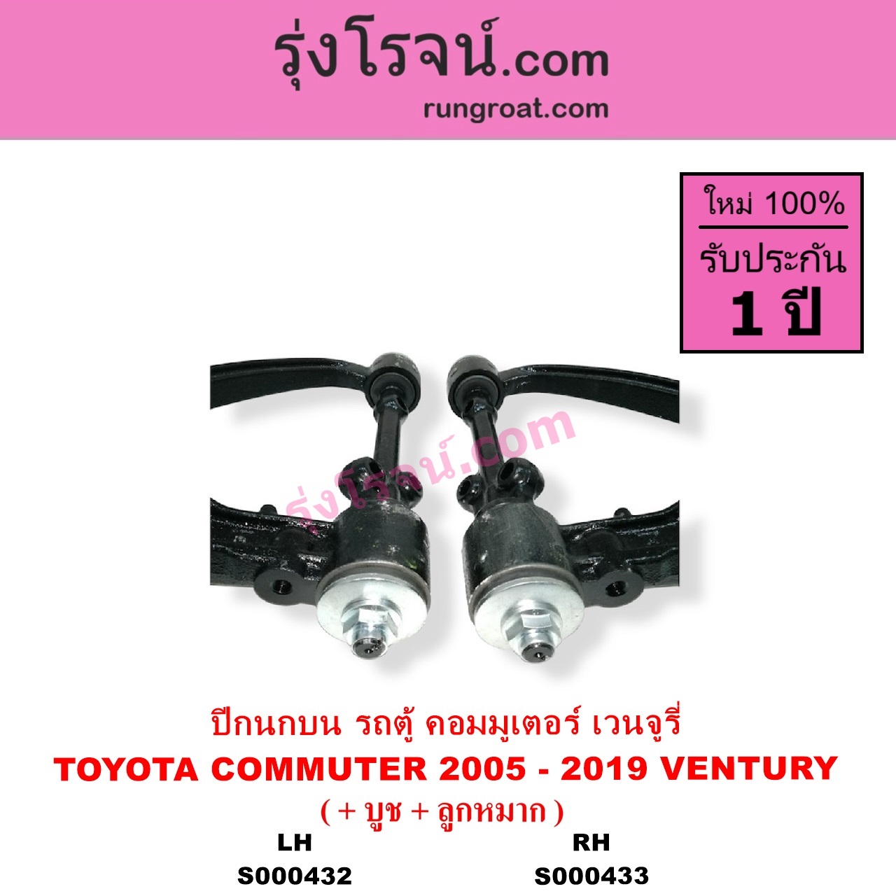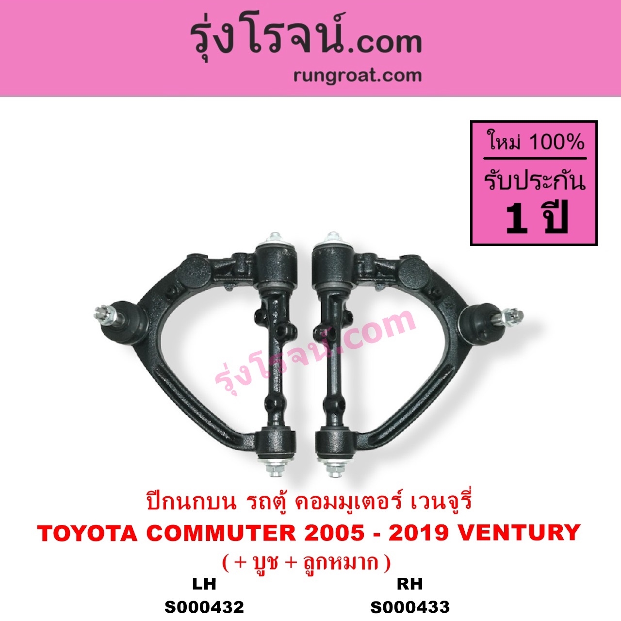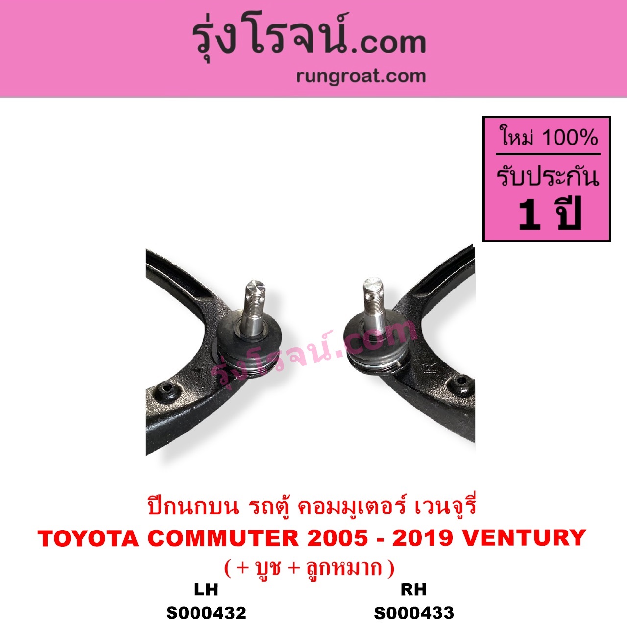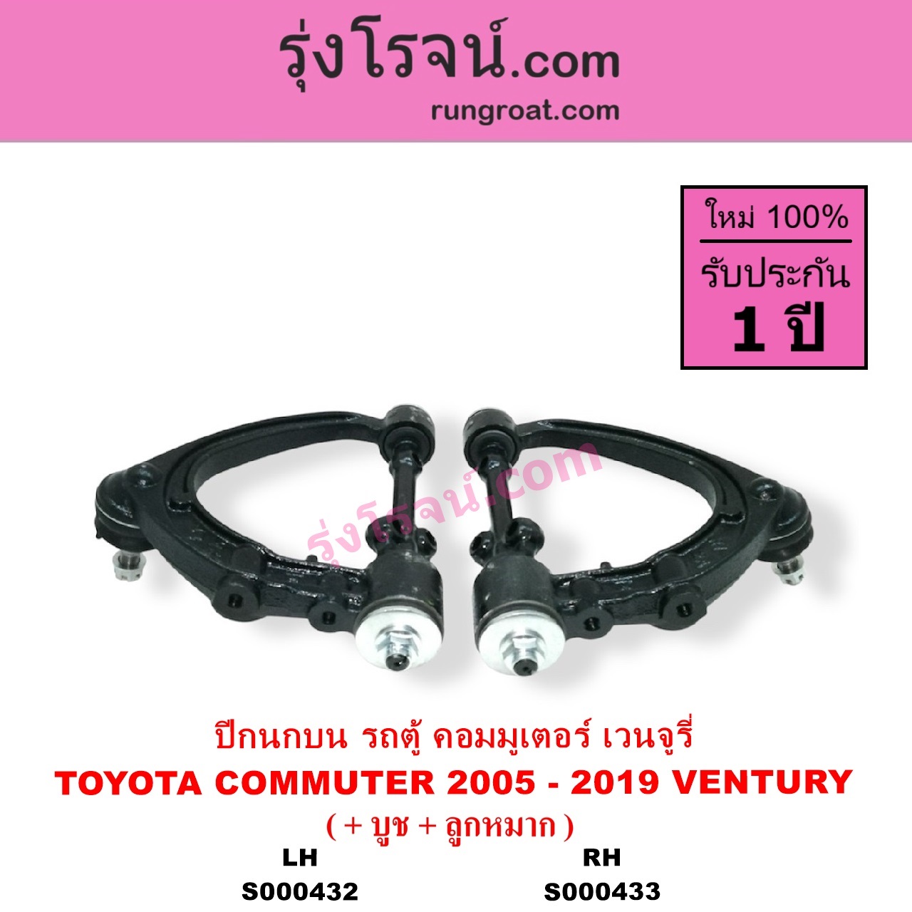 | S000433 | ปีกนกบน (+ บูท + ลูกหมาก) | TOYOTA (โตโยต้า) / COMMUTER (รถตู้ คอมมิวเตอร์ คอมมูเตอร์ 2005 – 2019) , TOYOTA (โตโยต้า) / VENTURY (เวนจูรี่) |