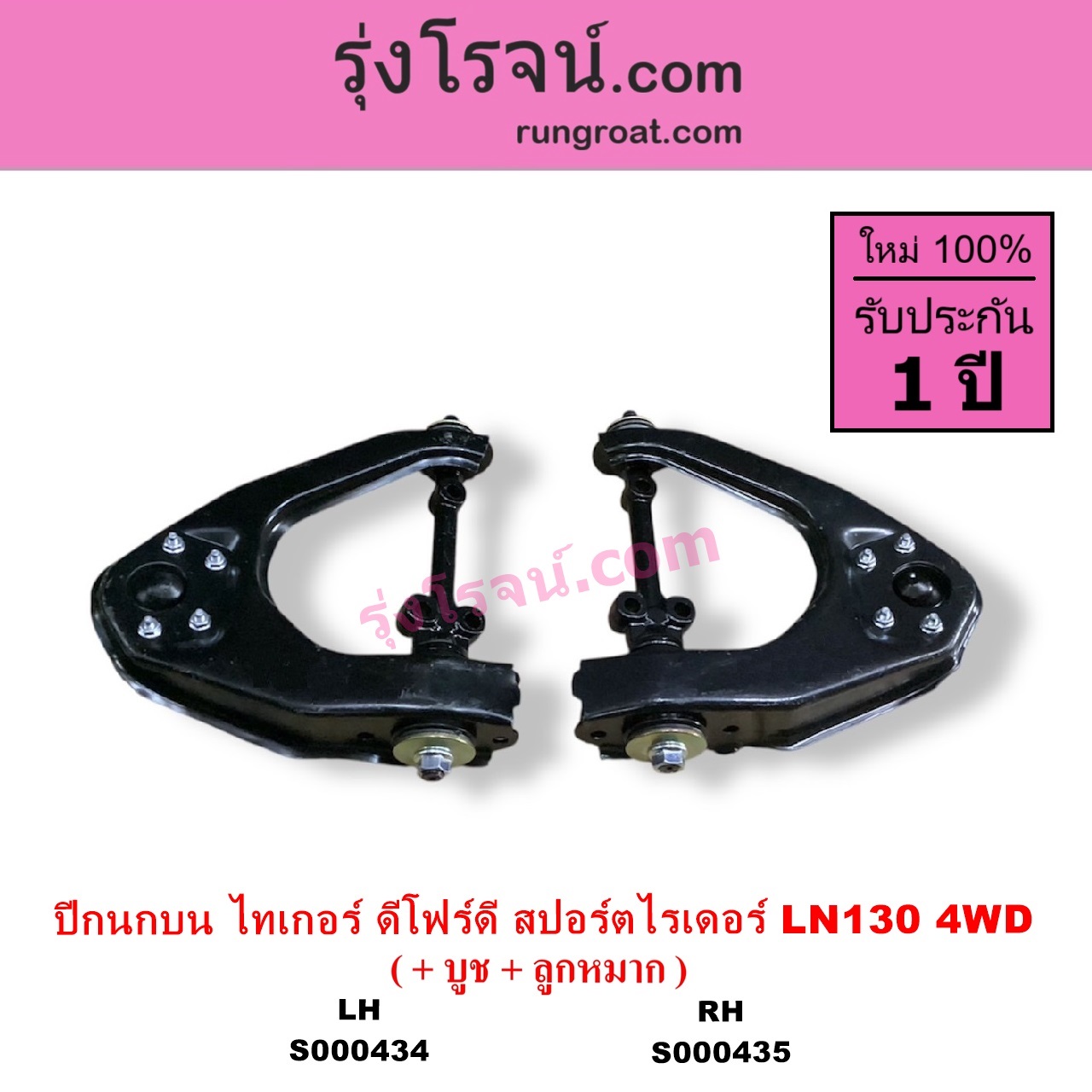 | S000435 | ปีกนกบน (+ บูท + ลูกหมาก) | TOYOTA (โตโยต้า) / LN130 (SURF, เซิฟ) , TOYOTA (โตโยต้า) / SPORTRIDER (สปอร์ตไรเดอร์) , TOYOTA (โตโยต้า) / TIGER/TIGER D4D (ไทเกอร์ / ไทเกอร์ ดีโฟร์ดี) |