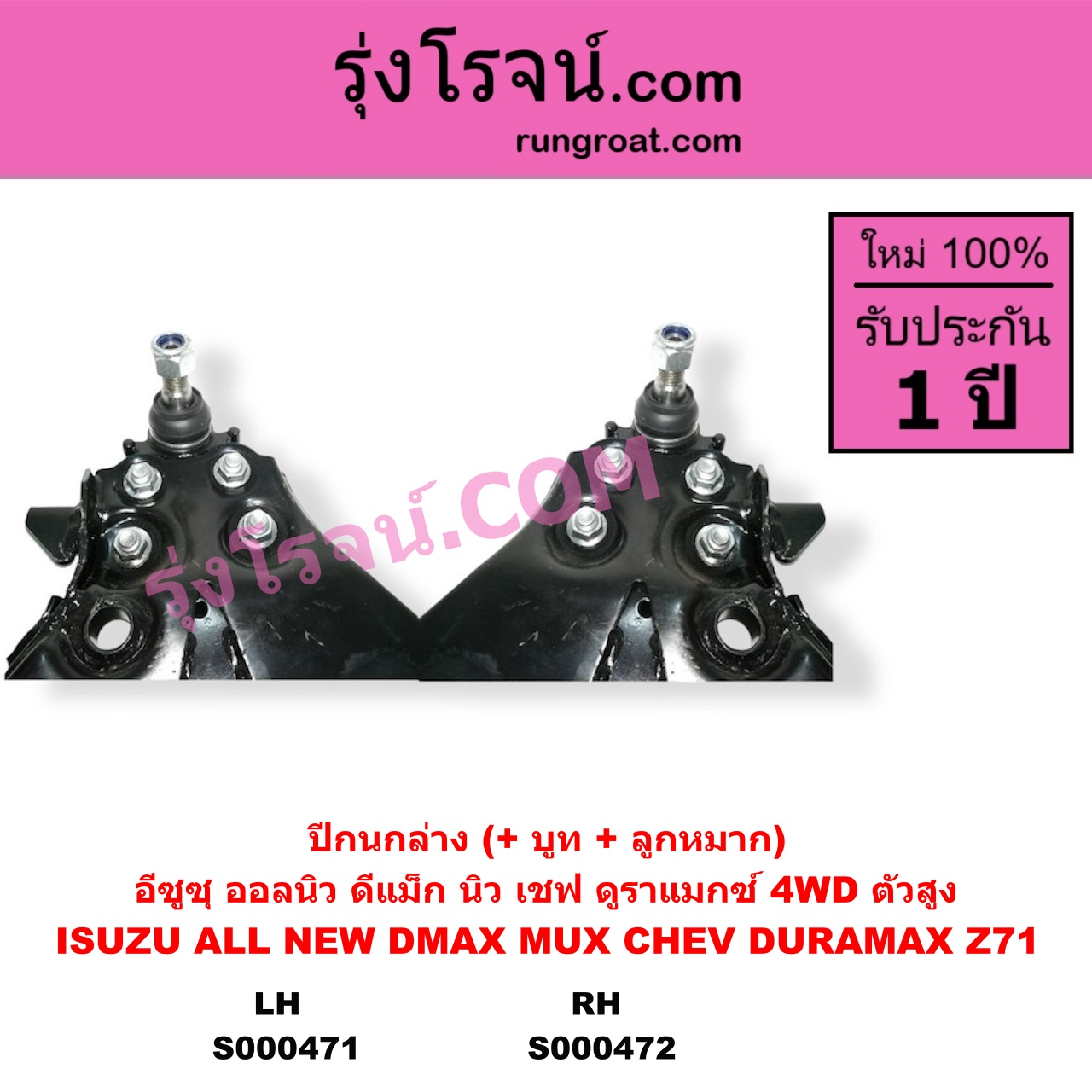 S000471 ปีกนกล่าง + บูท + ลูกหมาก CHEVROLET เชฟโรเลต COLORADO โคโลราโด 2012 – 2020 นิว เชฟ ดูราแมกซ์ Z71 DURAMAX TRAILBLAZER เทรลเบลเซอร์ 2013 – 2020 ISUZU อีซูซุ D-MAX ออนิว ออลนิว ดีแม็ก ดีแม็ค DMAX 2012 – 2019 วีครอส V-CROSS บลูเพาเวอร์ 1.9 MU X มิว X 2014 – 2019 4WD ตัวสูง LH