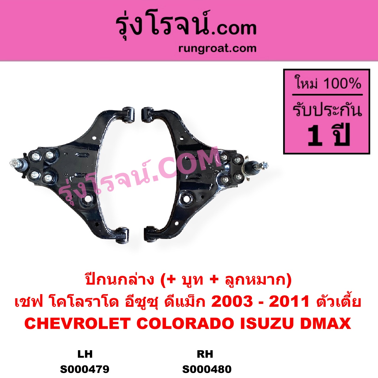 | S000479 | ปีกนกล่าง (+ บูท + ลูกหมาก) | CHEVROLET (เชฟโรเลต) / COLORADO (โคโลราโด 2005 – 2011) (ตา 2 ชั้น / ตาชั้นเดียว) , ISUZU (อีซูซุ) / D-MAX (ดีแม็ก ดีแม็ค DMAX 2003 – 2011) (รุ่นแรก) |