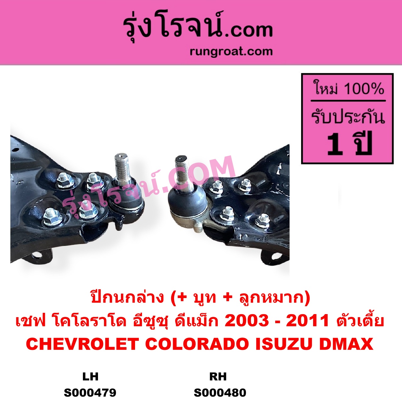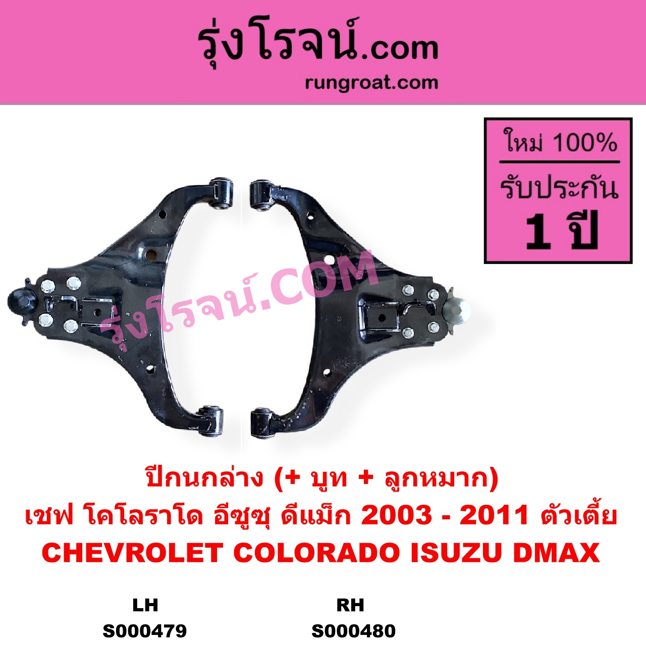 | S000480 | ปีกนกล่าง (+ บูท + ลูกหมาก) | CHEVROLET (เชฟโรเลต) / COLORADO (โคโลราโด 2005 – 2011) (ตา 2 ชั้น / ตาชั้นเดียว) , ISUZU (อีซูซุ) / D-MAX (ดีแม็ก ดีแม็ค DMAX 2003 – 2011) (รุ่นแรก) |