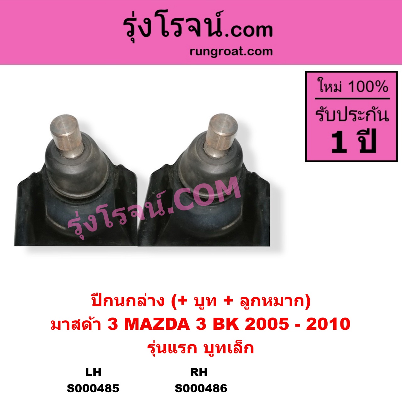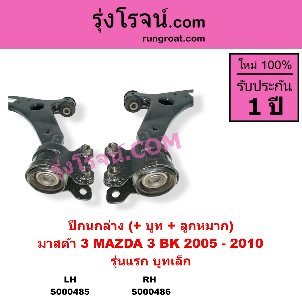 | S000486 | ปีกนกล่าง (+ บูท + ลูกหมาก) | MAZDA (มาสด้า) / MAZDA 3 (มาสด้า 3 2005 – 2010) (BK รุ่นแรก) | (รุ่นแรก บูทเล็ก) RH | ไต้หวัน (ใหม่) |