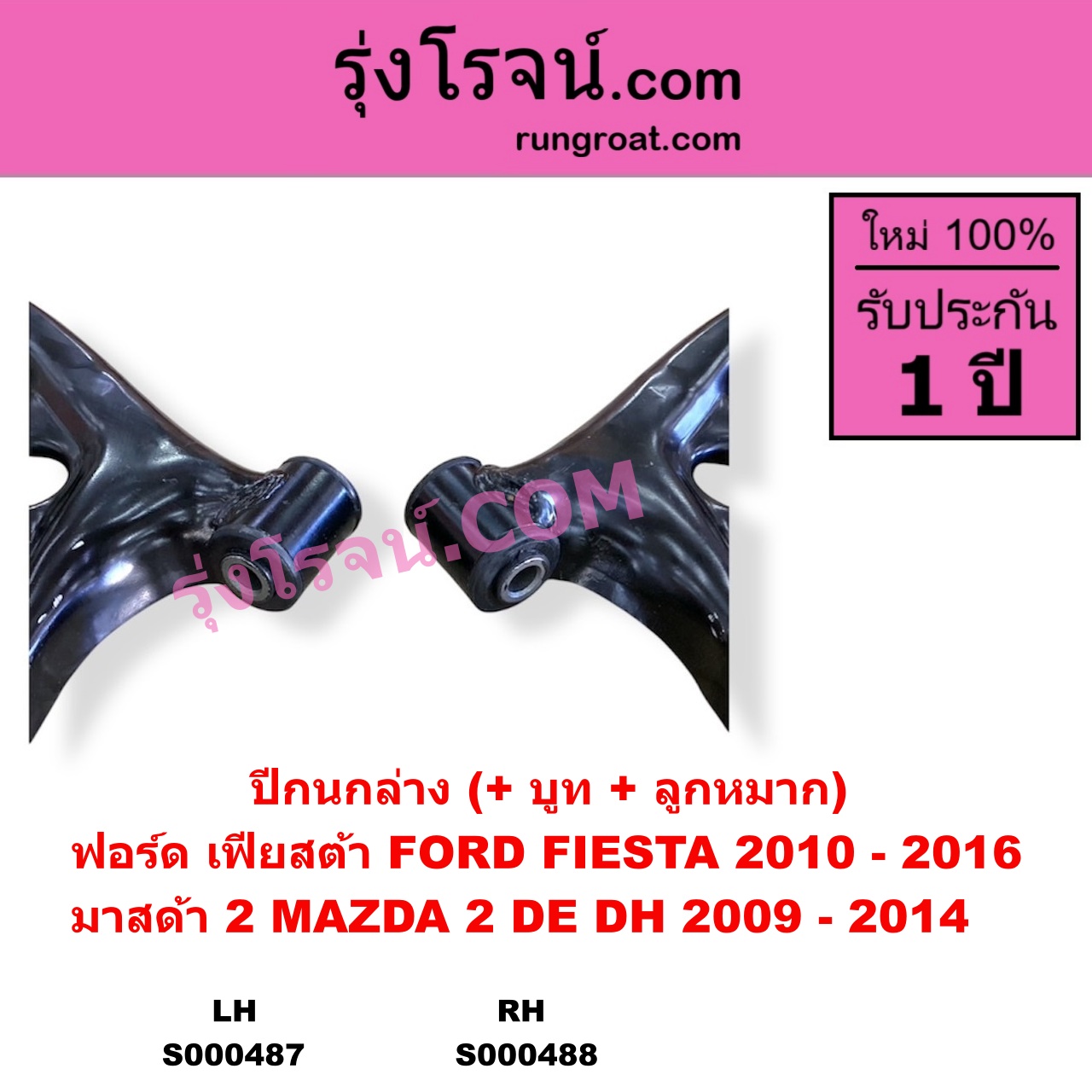 | S000488 | ปีกนกล่าง (+ บูท + ลูกหมาก) | FORD (ฟอร์ด) / FIESTA (เฟียสต้า 2010 – 2016) (4ประตู/5ประตู) , MAZDA (มาสด้า) / MAZDA 2 (มาสด้า 2 2009 – 2014) (DE DH รุ่นแรก) |