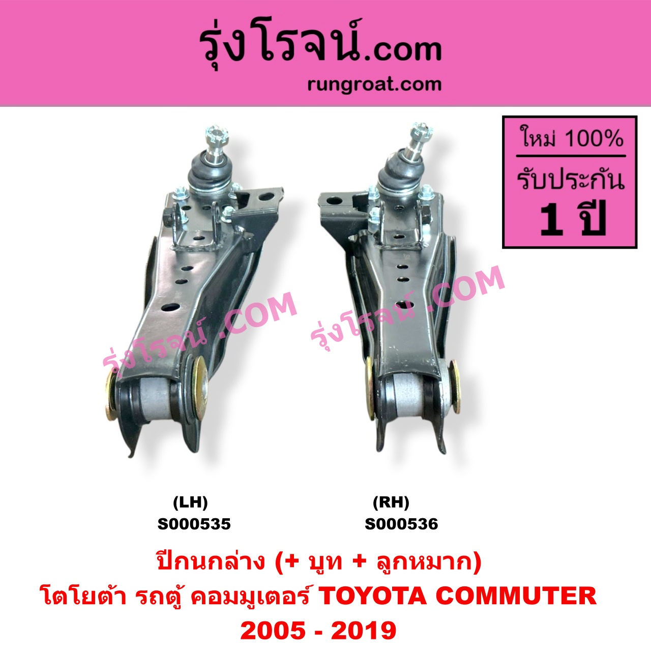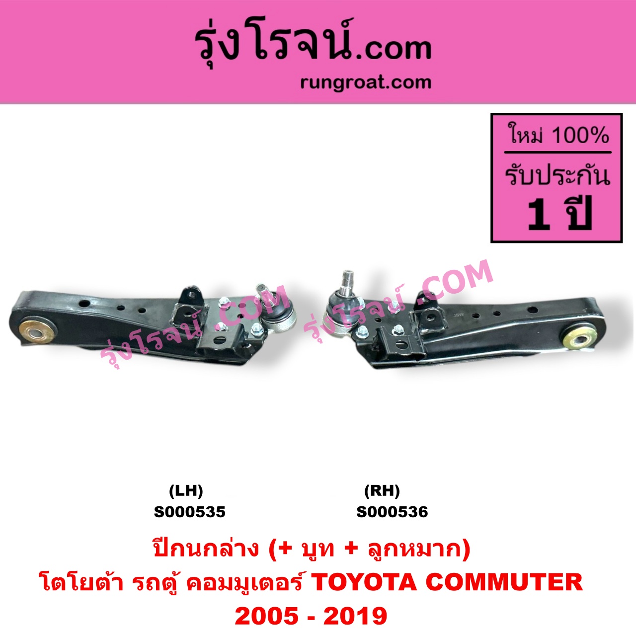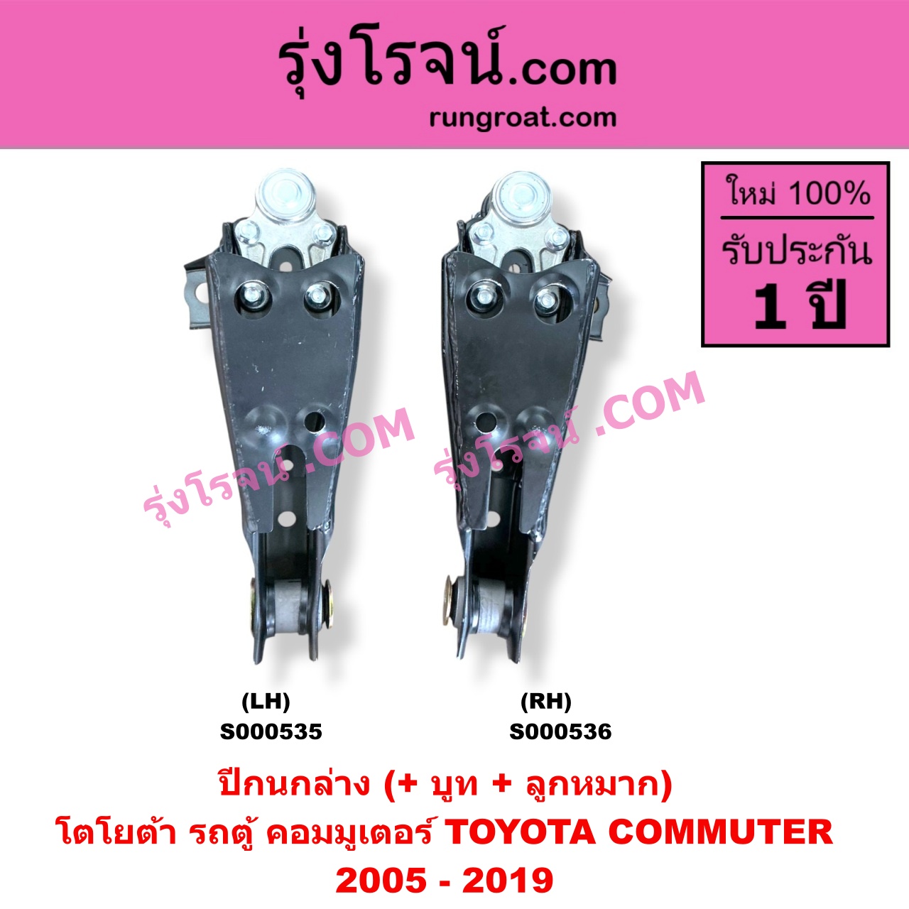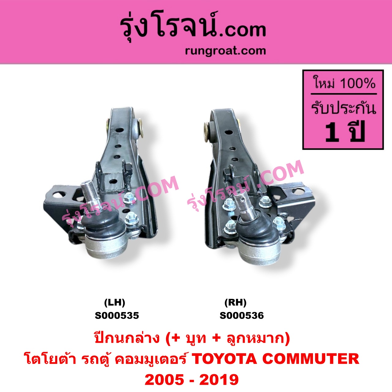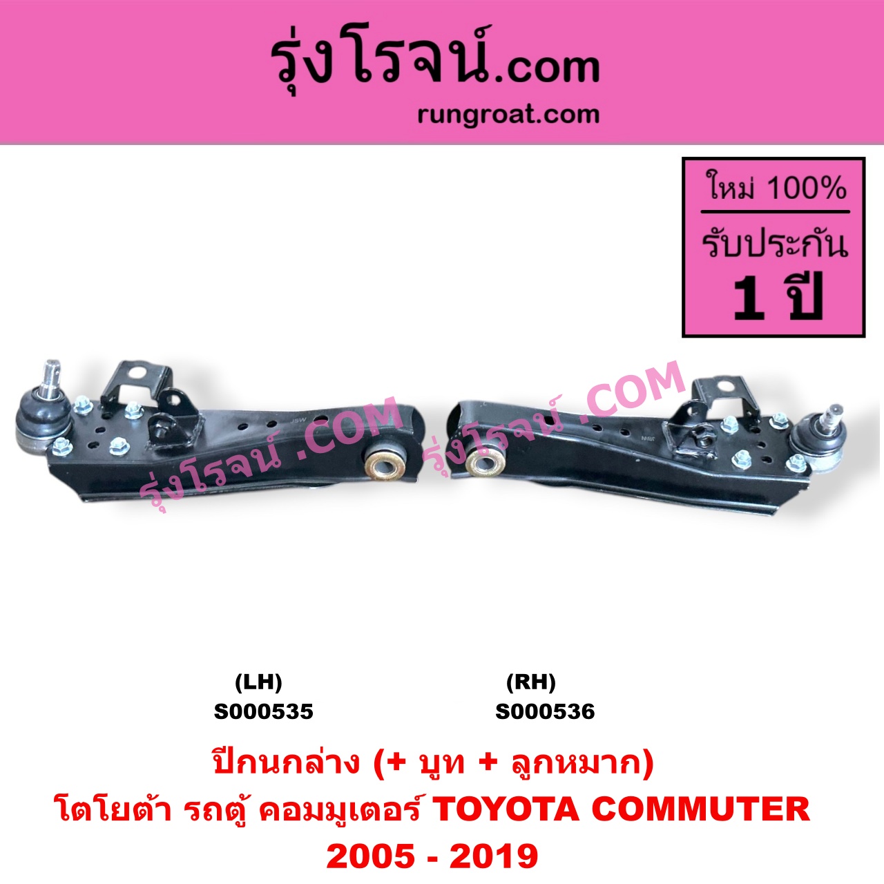 | S000535 | ปีกนกล่าง (+ บูท + ลูกหมาก) | TOYOTA (โตโยต้า) / COMMUTER (รถตู้ คอมมิวเตอร์ คอมมูเตอร์ 2005 – 2019) | LH | ไต้หวัน (ใหม่) |