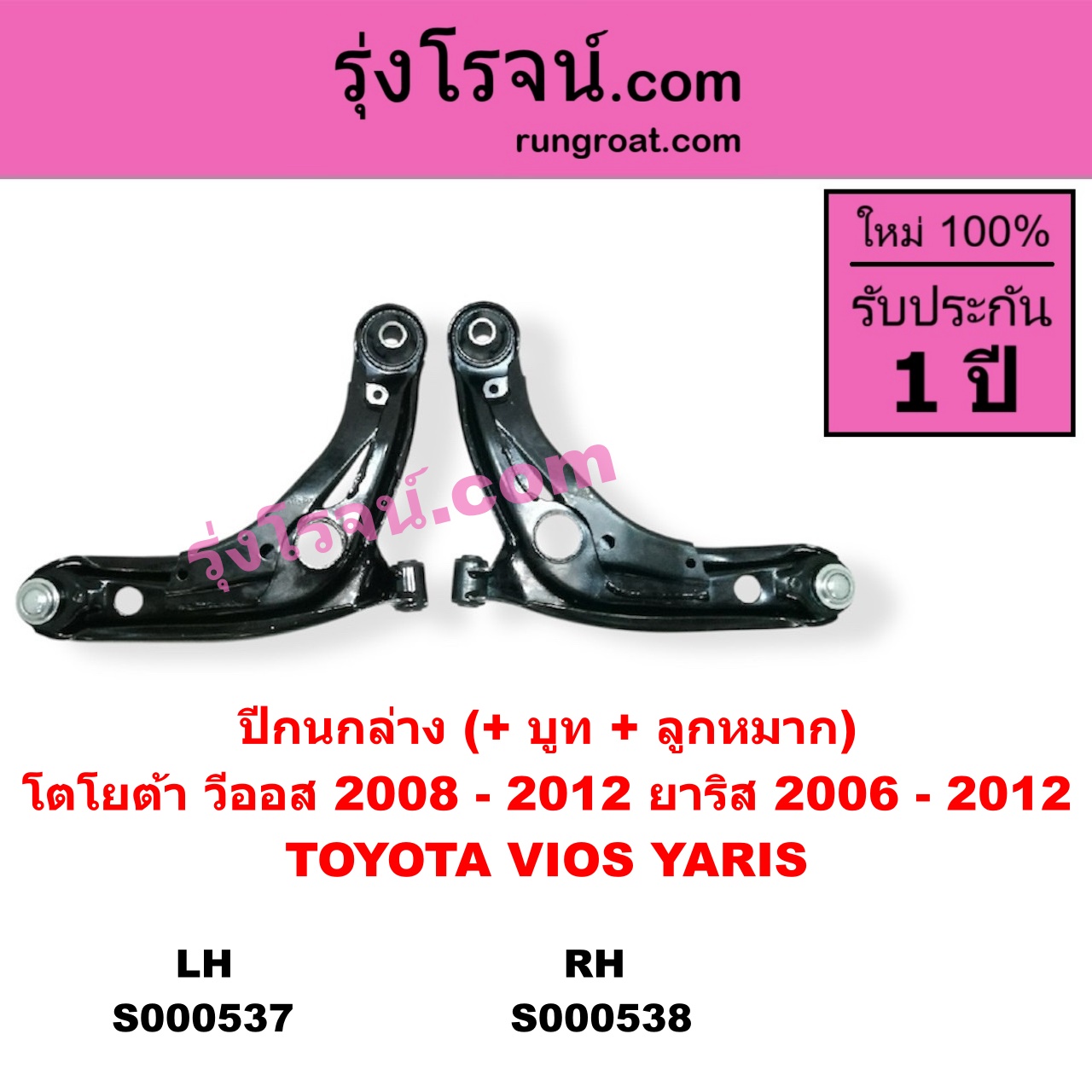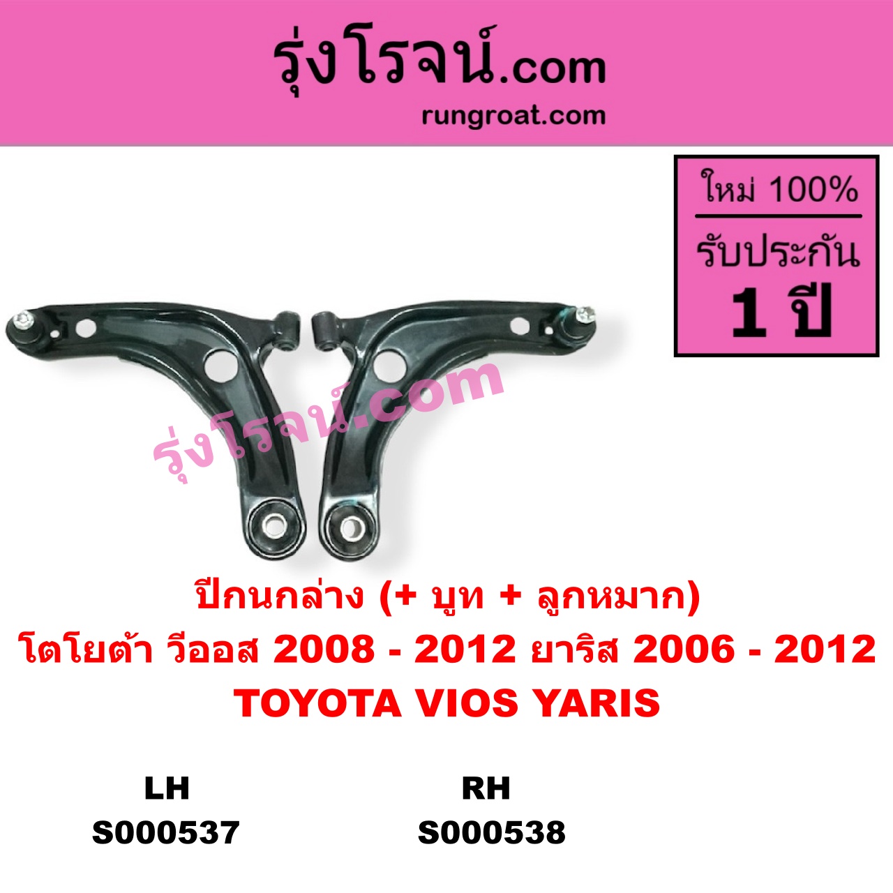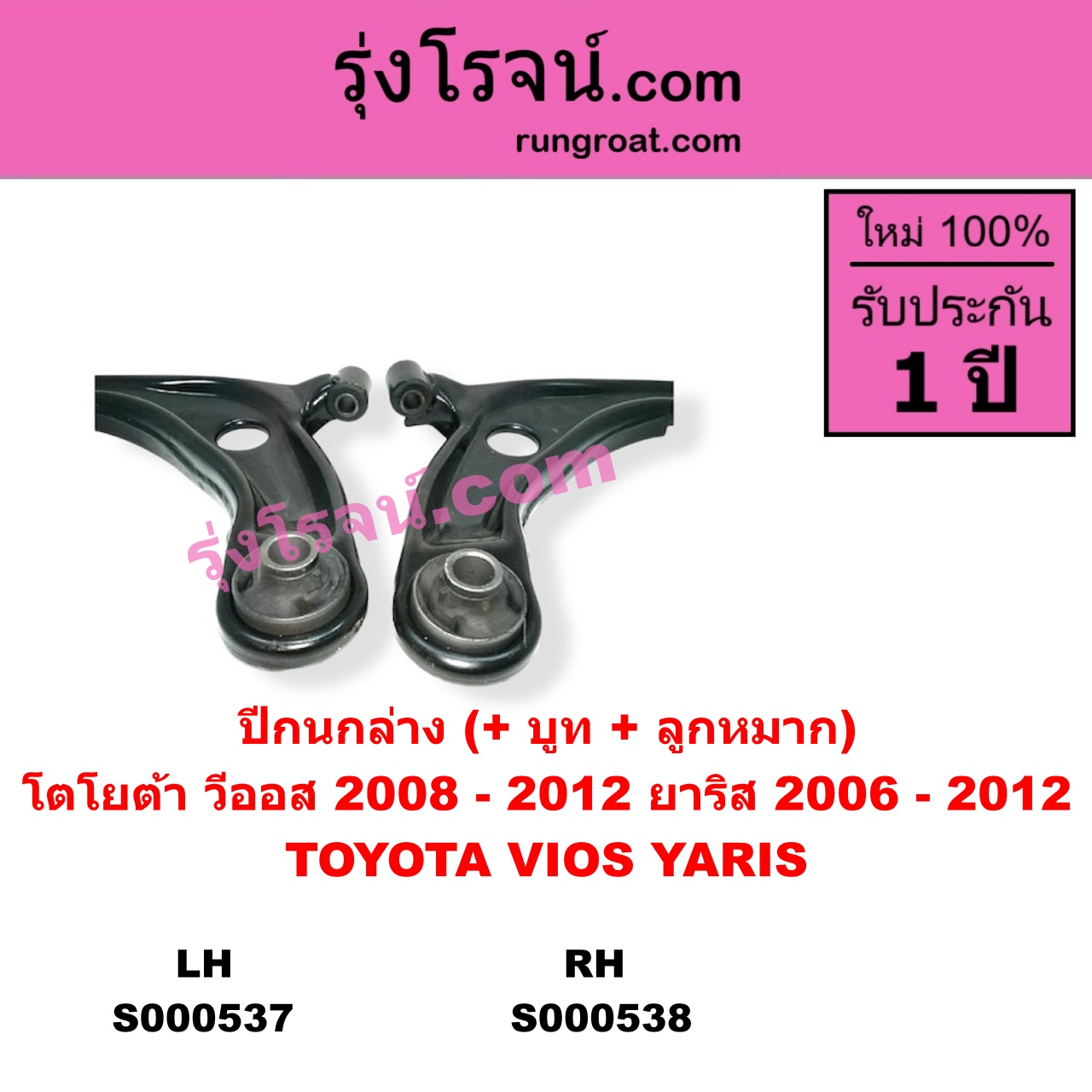 | S000538 | ปีกนกล่าง (+ บูท + ลูกหมาก) | TOYOTA (โตโยต้า) / VIOS (วีออส 2008 – 2012) (รุ่น 2) , TOYOTA (โตโยต้า) / YARIS (ยาริส 2006 – 2012) (รุ่นแรก) |