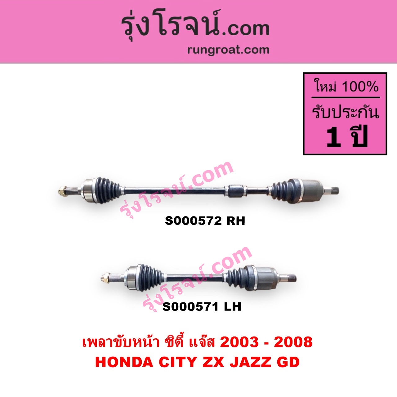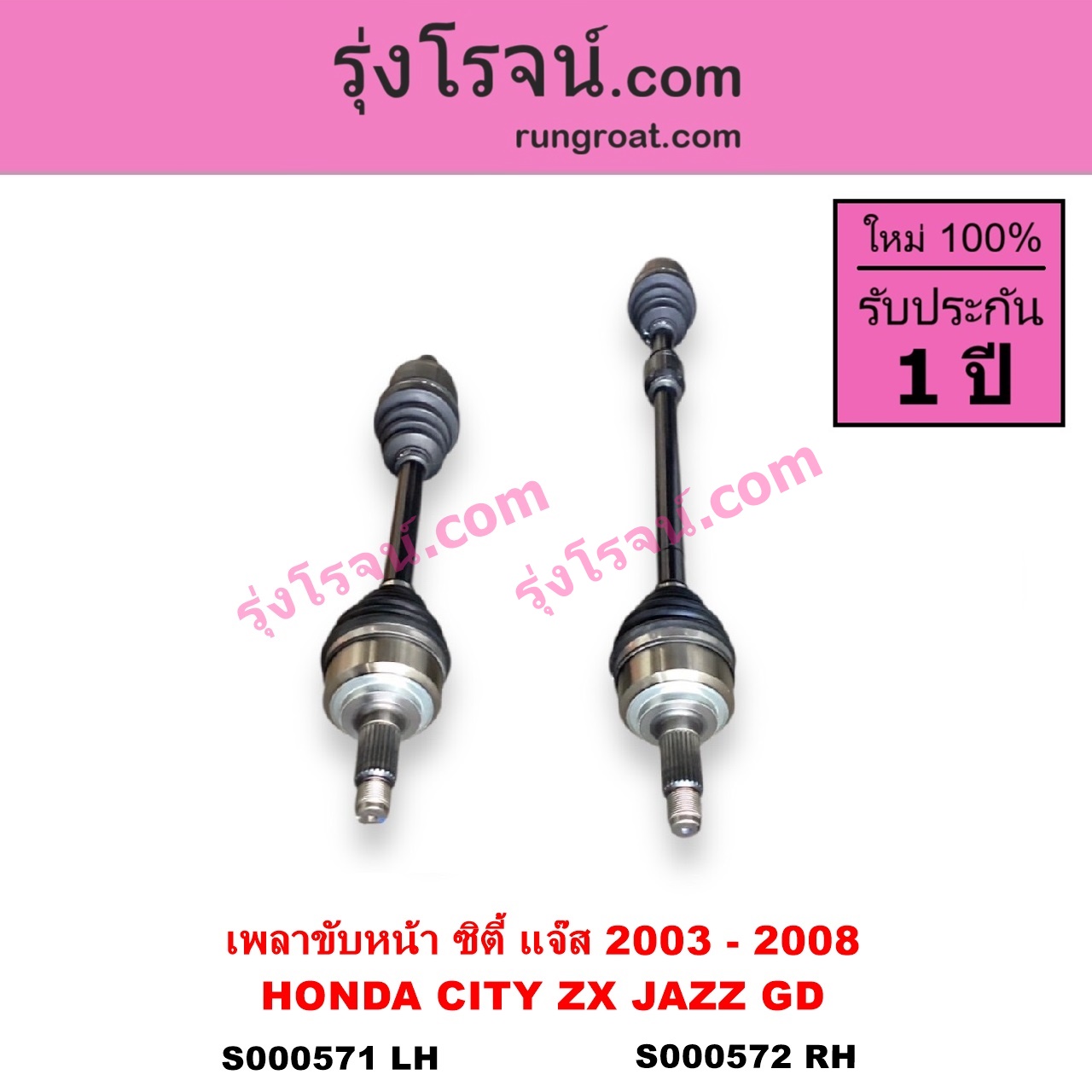 | S000571 | เพลาขับหน้า | HONDA (ฮอนด้า) / CITY (ซิตี้ 2003 – 2008) (แมลงสาบ, ZX) , HONDA (ฮอนด้า) / JAZZ (แจ๊ส 2003 – 2008) (GD) |
