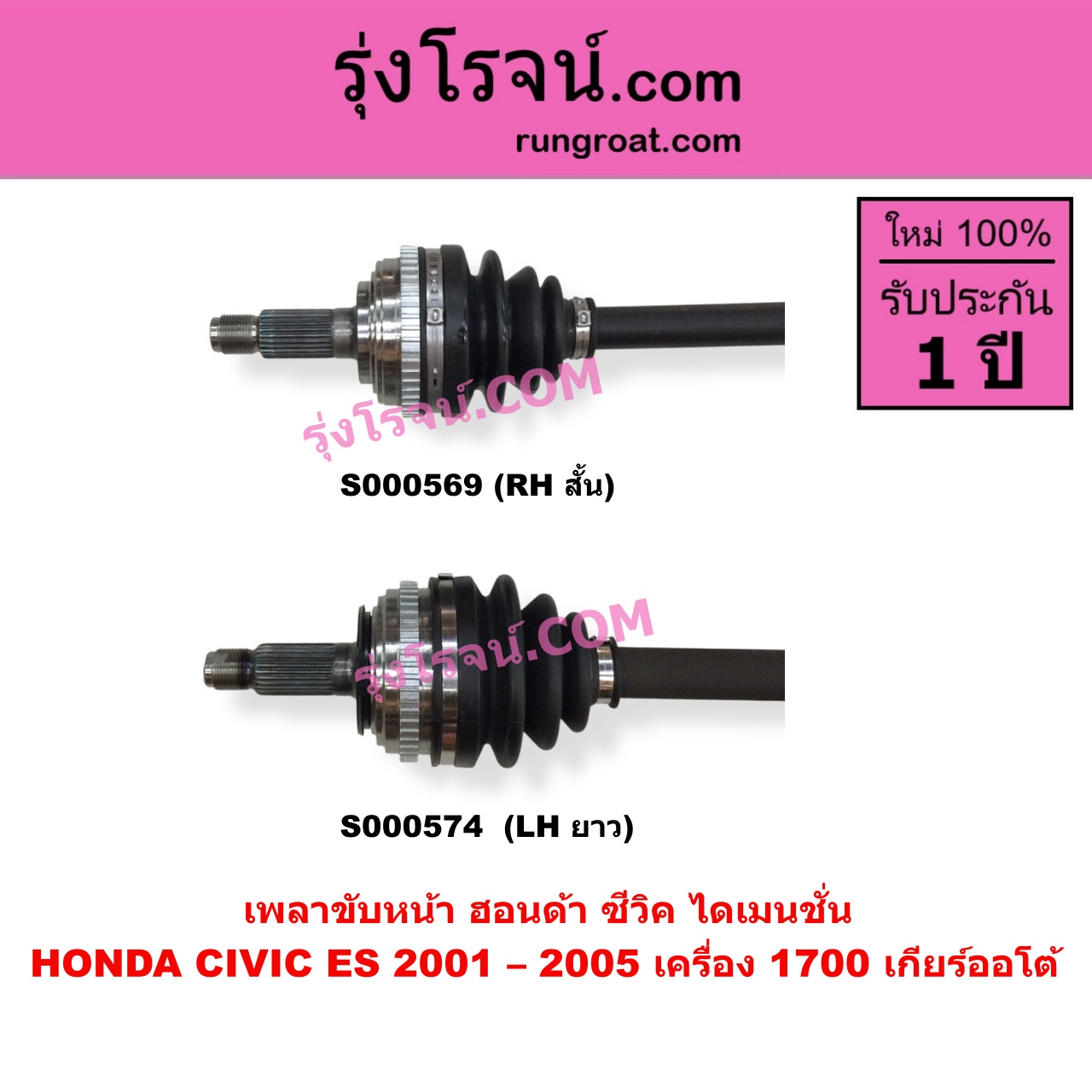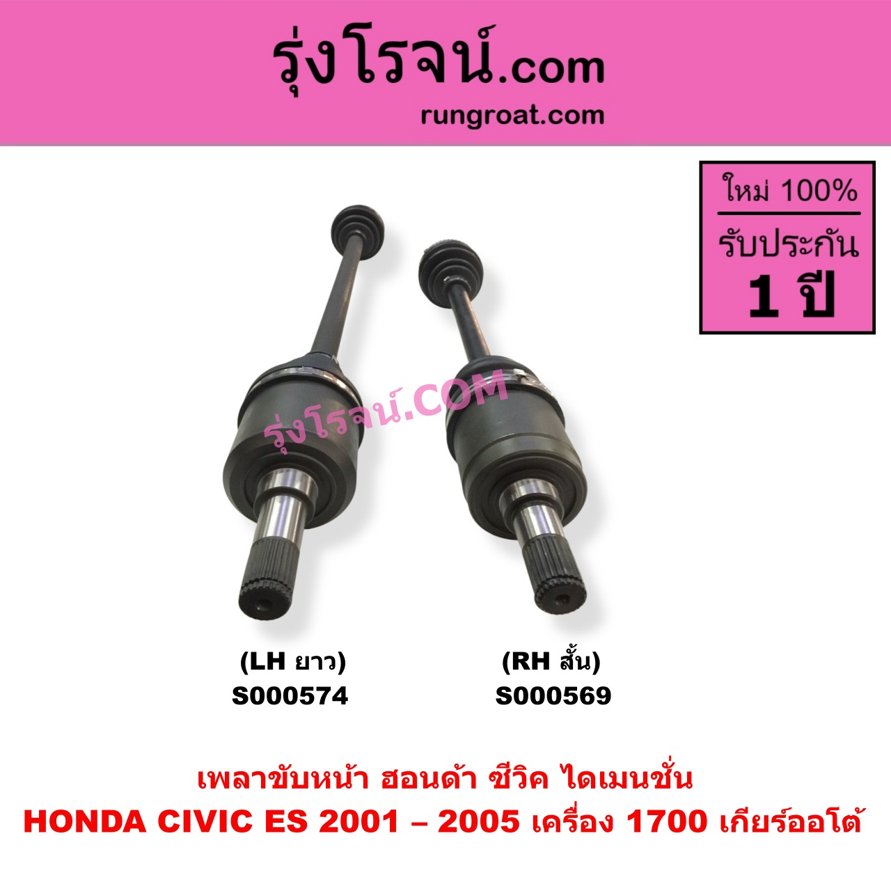 | S000574 | เพลาขับหน้า | HONDA (ฮอนด้า) / CIVIC (ซีวิค 2001 – 2005) (ไดเมนชั่น) (ES) | (เครื่อง 1700) (เกียร์ออโต้) (LH ยาว) | ไต้หวัน (ใหม่) |