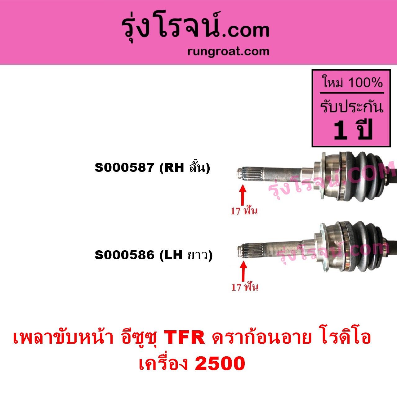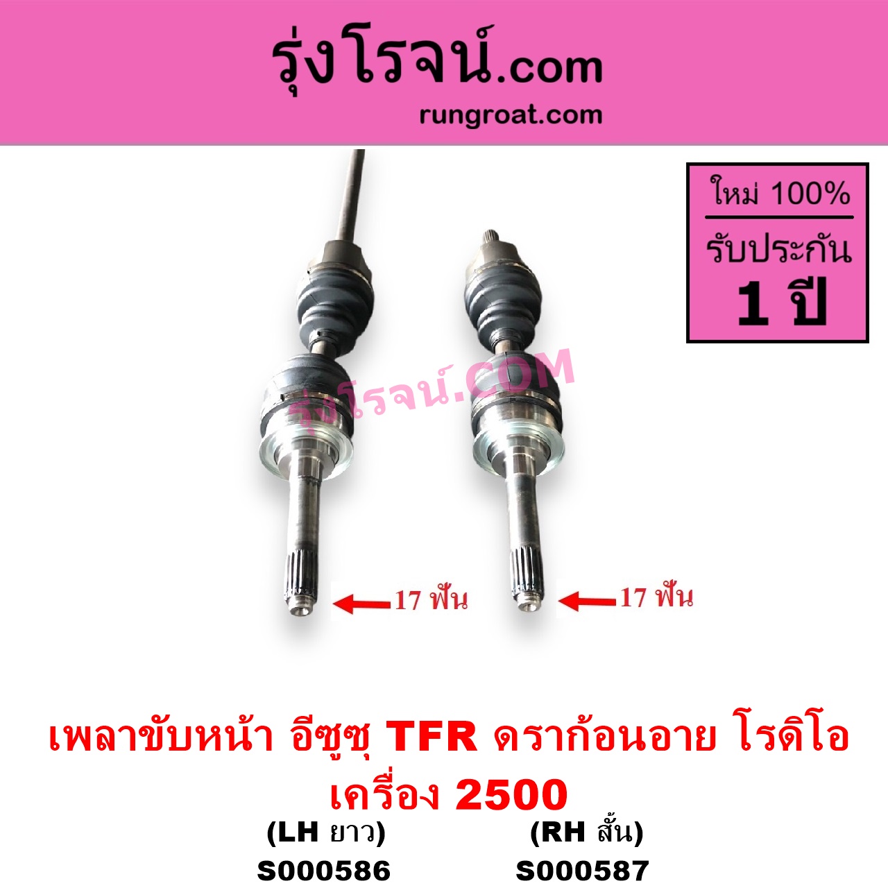 | S000587 | เพลาขับหน้า | ISUZU (อีซูซุ) / DRAGON EYE (ดราก้อน อาย) (TFR 1997 – 2002) , ISUZU (อีซูซุ) / RODEO (โรดิโอ) , ISUZU (อีซูซุ) / TFR (มังกรทอง 1988 – 1996) |