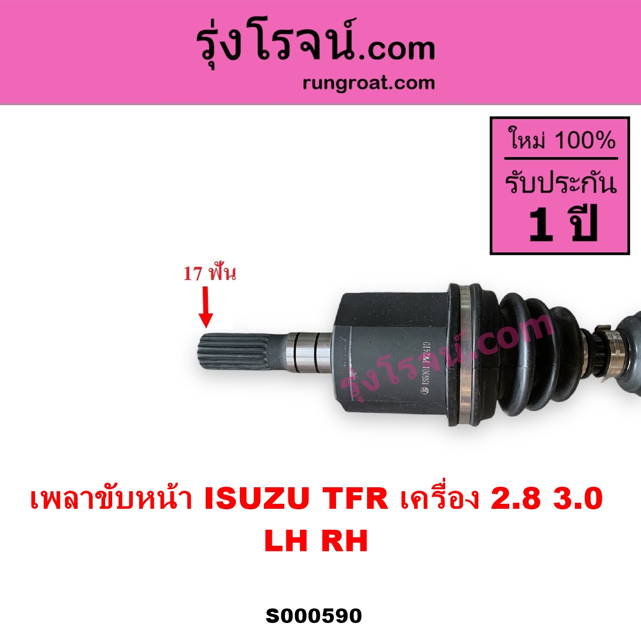 | S000590 | เพลาขับหน้า | ISUZU (อีซูซุ) / DRAGON EYE (ดราก้อน อาย) (TFR 97/99) , ISUZU (อีซูซุ) / RODEO (โรดิโอ) , ISUZU (อีซูซุ) / TFR (มังกรทอง 90/95) |