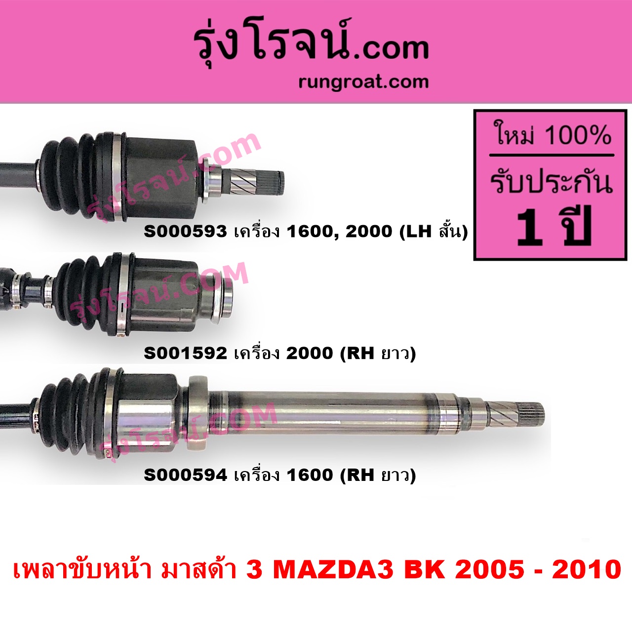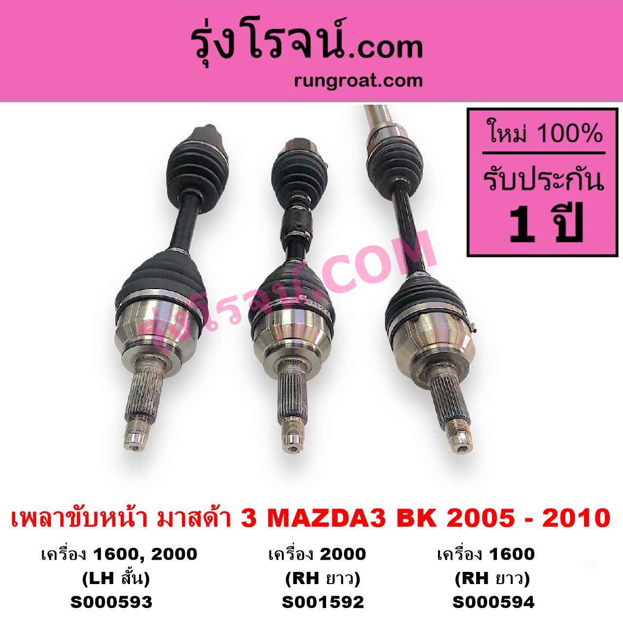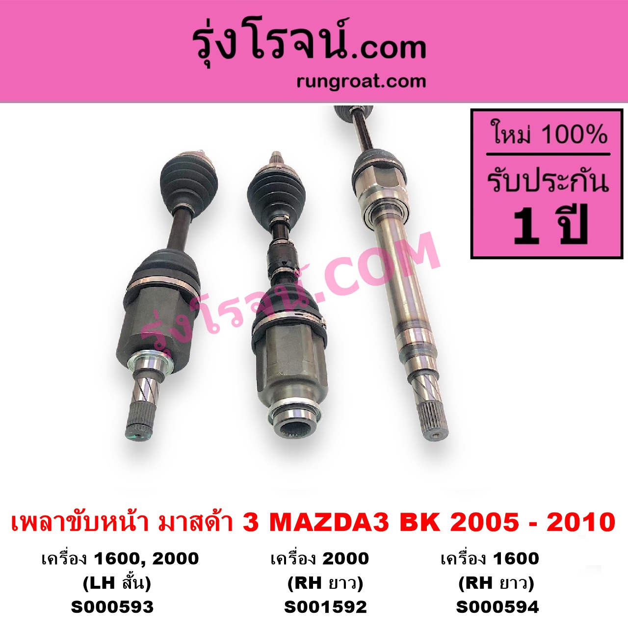 S000594 เพลาขับหน้า MAZDA (มาสด้า) / MAZDA 3 (มาสด้า 3 2005 – 2010) (BK รุ่นแรก) เครื่อง 1600 (RH ยาว) ไต้หวัน (ใหม่)