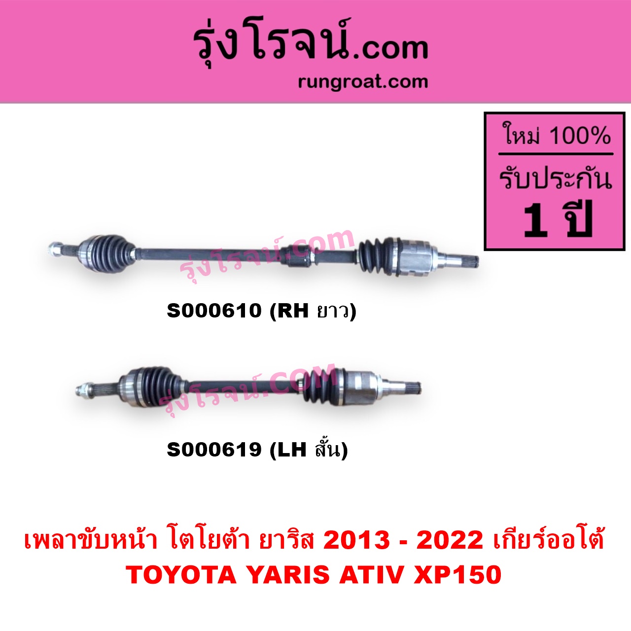S000610 เพลาขับหน้า TOYOTA (โตโยต้า) / YARIS (ยาริส 2013 – 2022) (ATIV, รุ่น 2) (XP150) ABS (ใส่รุ่นไม่ ABS ได้) (เกียร์ออโต้) (RH ยาว) ไต้หวัน (ใหม่)