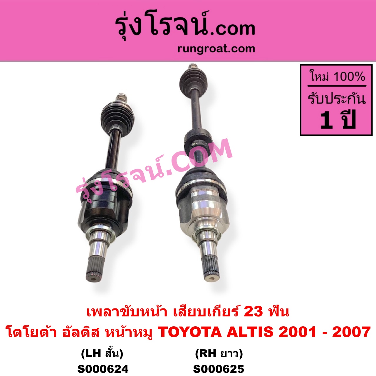 | S000625 | เพลาขับหน้า | TOYOTA (โตโยต้า) / ALTIS (อัลติส 2001 – 2007) (หน้าหมู รุ่นแรก) | (เครื่อง 1600) (เสียบเกียร์ 23 ฟัน) (RH ยาว) | ไต้หวัน (ใหม่) |
