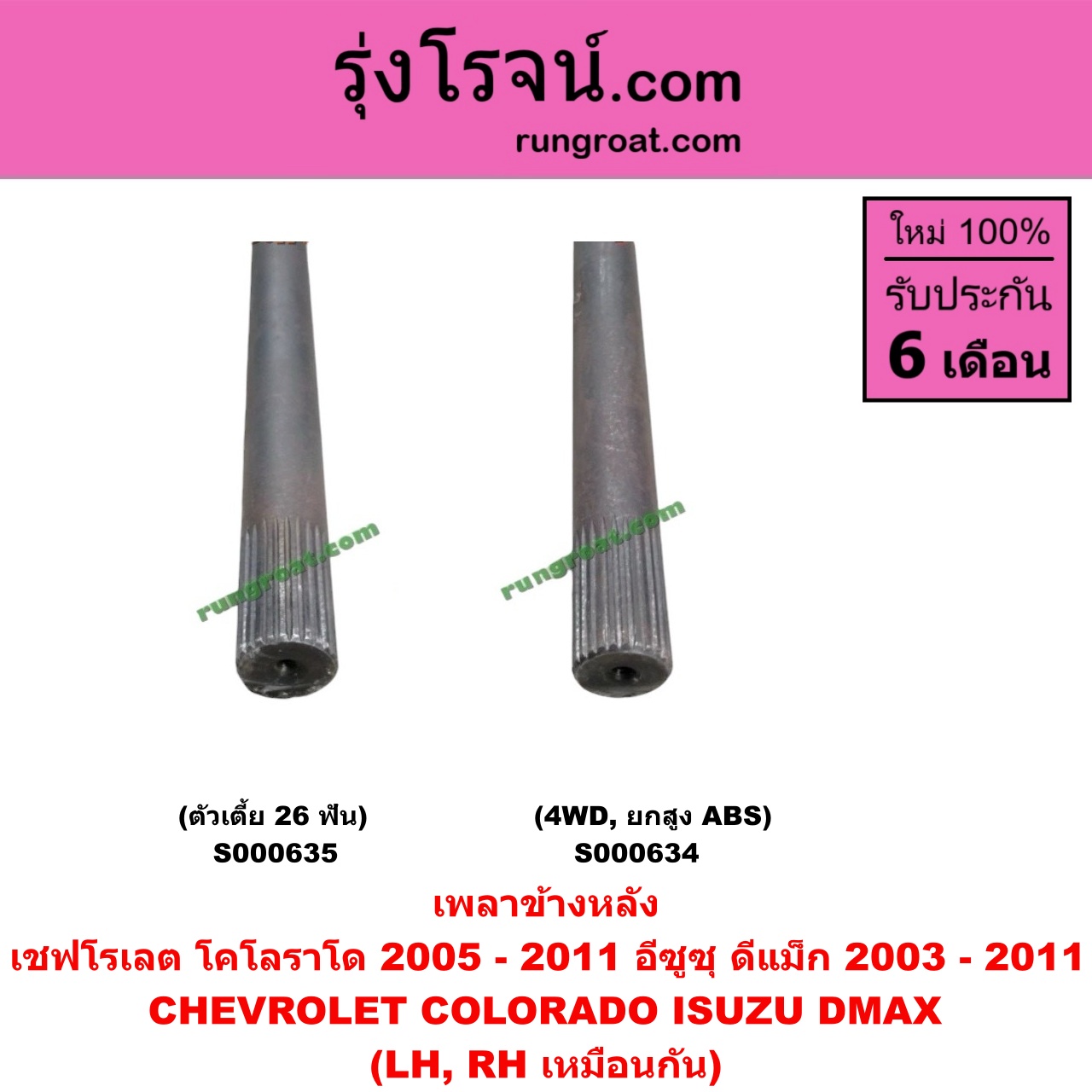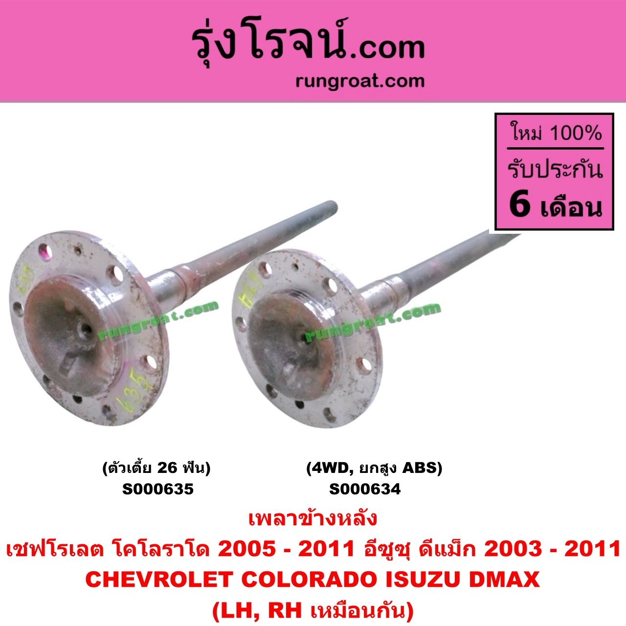 S000634 เพลาข้างหลัง CHEVROLET (เชฟโรเลต) / COLORADO (โคโลราโด 05/09) (ตา 2 ชั้น / ตาชั้นเดียว) , ISUZU (อีซูซุ) / D-MAX (ดีแม็ก 03/05/07) (รุ่นแรก) , MU 7 (มิว 7 05/09) 4WD, ยกสูง (ABS) LH, RH