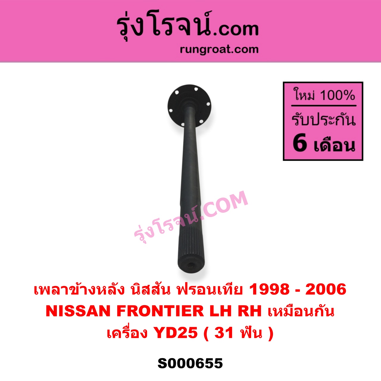 | S000655 | เพลาข้างหลัง | NISSAN (นิสสัน) / FRONTIER (ฟรอนเทีย 1998 – 2006) | เครื่อง YD25 (31 ฟัน) (LH, RH) | ไต้หวัน (ใหม่) |