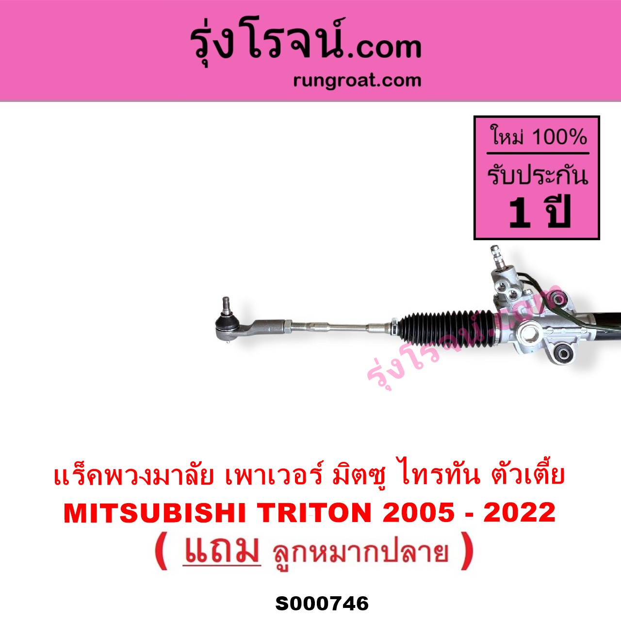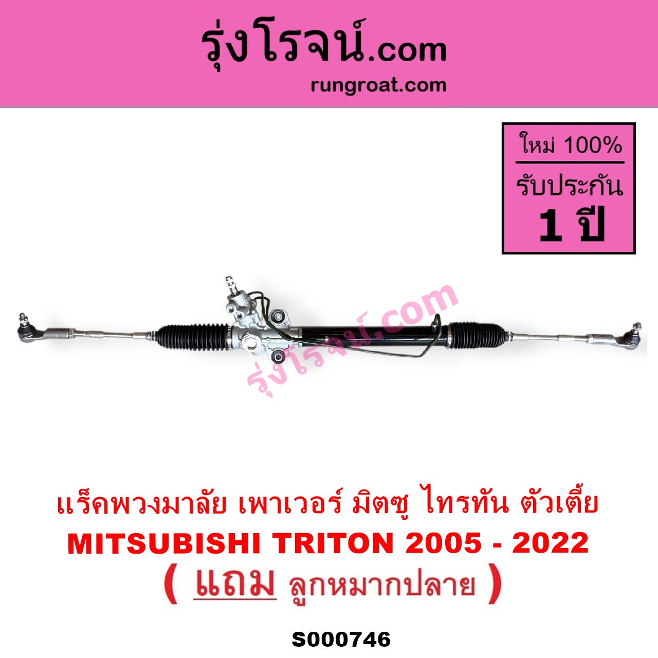 | S000746 | แร็คพวงมาลัย (แร็คเพาเวอร์) | MITSUBISHI (มิตซู) / TRITON (ไทรทัน ไตตั้น 2005 – 2014 PLUS) (รุ่นแรก) , MITSUBISHI (มิตซู) / TRITON (ออลนิว ไทรทัน ไตตั้น 2015 – 2022) (รุ่น 2) |