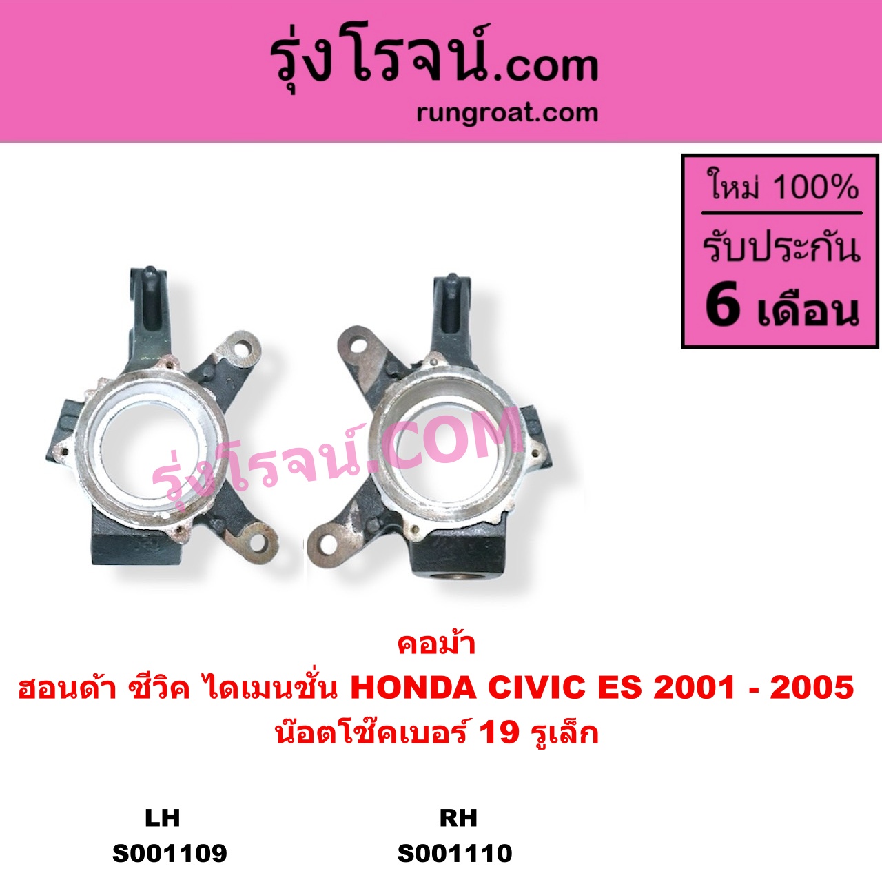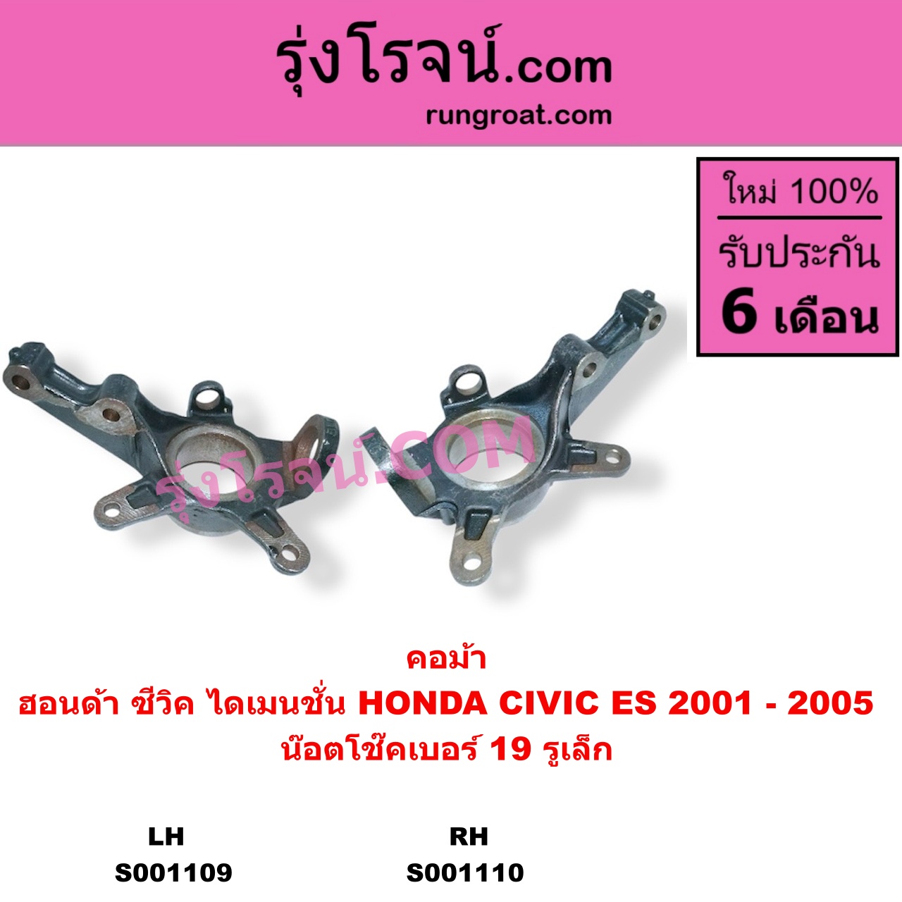 | S001109 | คอม้า | HONDA (ฮอนด้า) / CIVIC (ซีวิค 2001 – 2005) (ไดเมนชั่น) (ES) | (น๊อตโช๊คเบอร์ 19 รูเล็ก) LH | ไต้หวัน (ใหม่) |