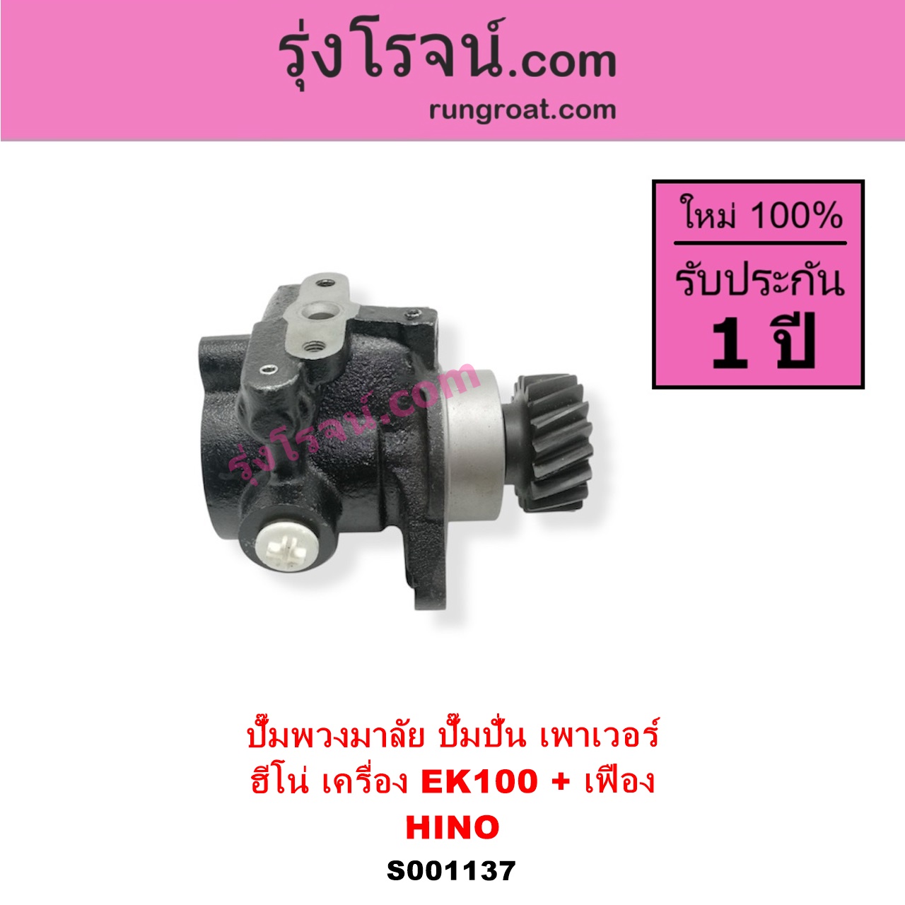 | S001137 | ปั๊มปั่นเพาเวอร์ (ปั๊มพวงมาลัย ตัวปั่น เพาเวอร์) | HINO (ฮีโน่) / * HINO รุ่นอื่นๆ | เครื่อง EK100 (+เฟือง) | ไต้หวัน (ใหม่) |