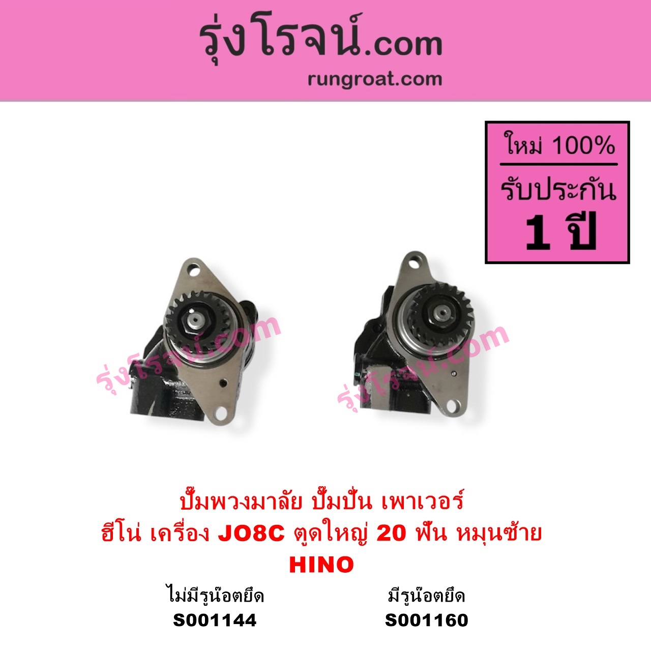 | S001144 | ปั๊มปั่นเพาเวอร์ (ปั๊มพวงมาลัย ตัวปั่น เพาเวอร์) | HINO (ฮีโน่) / * HINO รุ่นอื่นๆ | เครื่อง JO8C J08C ตูดใหญ่ (รุ่น ไม่มีรูน๊อต) (+ เฟือง 20 ฟัน หมุนซ้าย) | ไต้หวัน (ใหม่) |