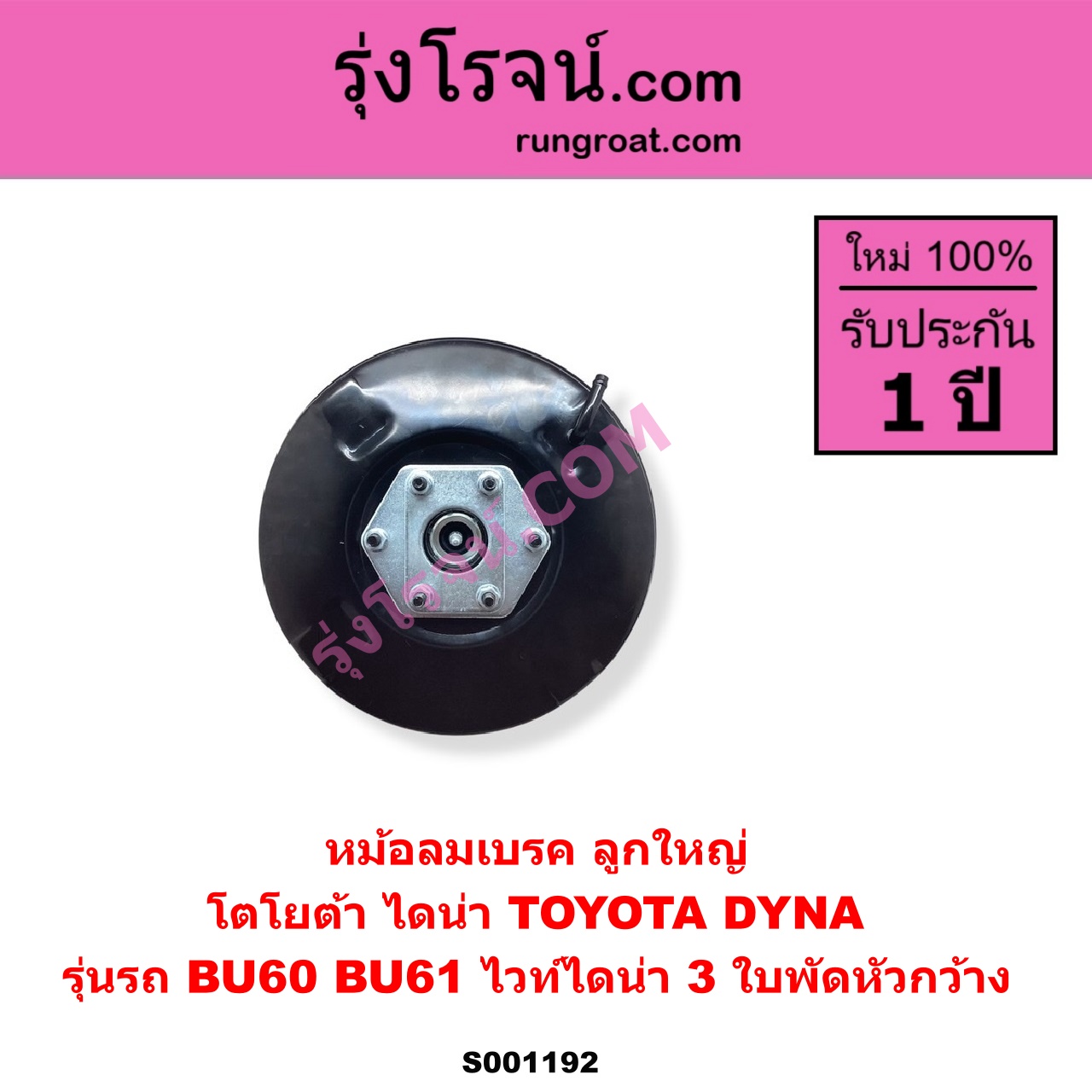 | S001192 | หม้อลมเบรค | TOYOTA (โตโยต้า) / DYNA (ไดน่า) | รุ่นรถ BU60, BU61 ไวท์ไดน่า 3 ใบพัดหัวกว้าง ลูกใหญ่ | ไต้หวัน (ใหม่) |