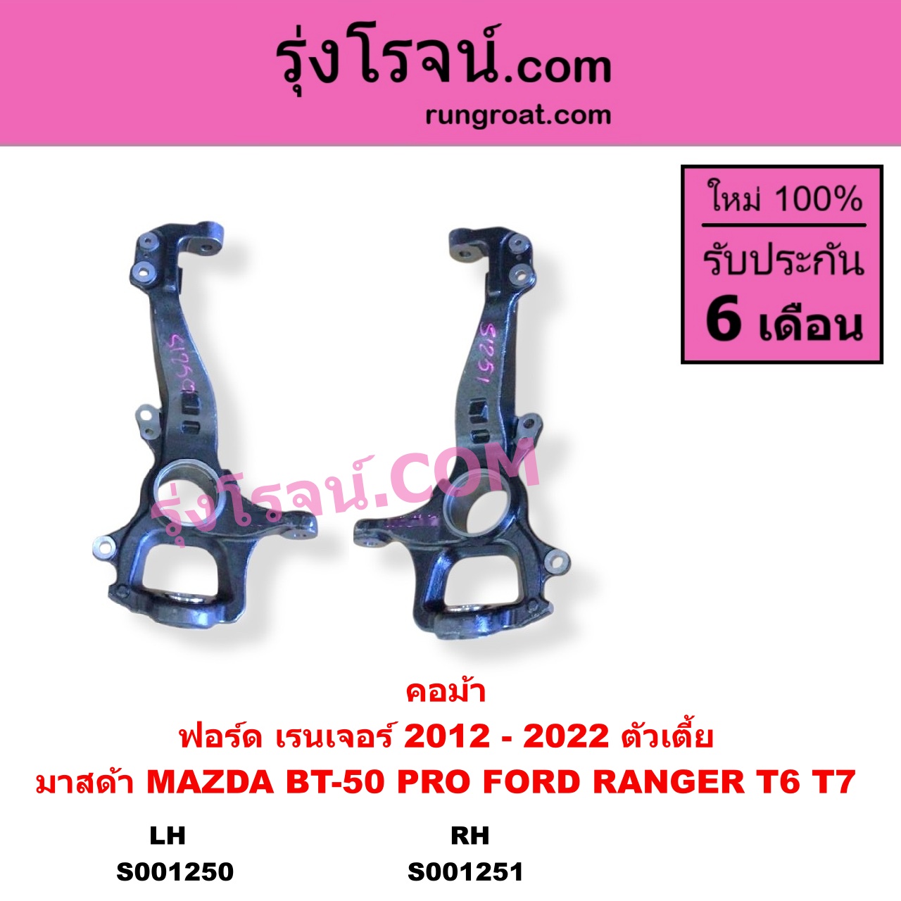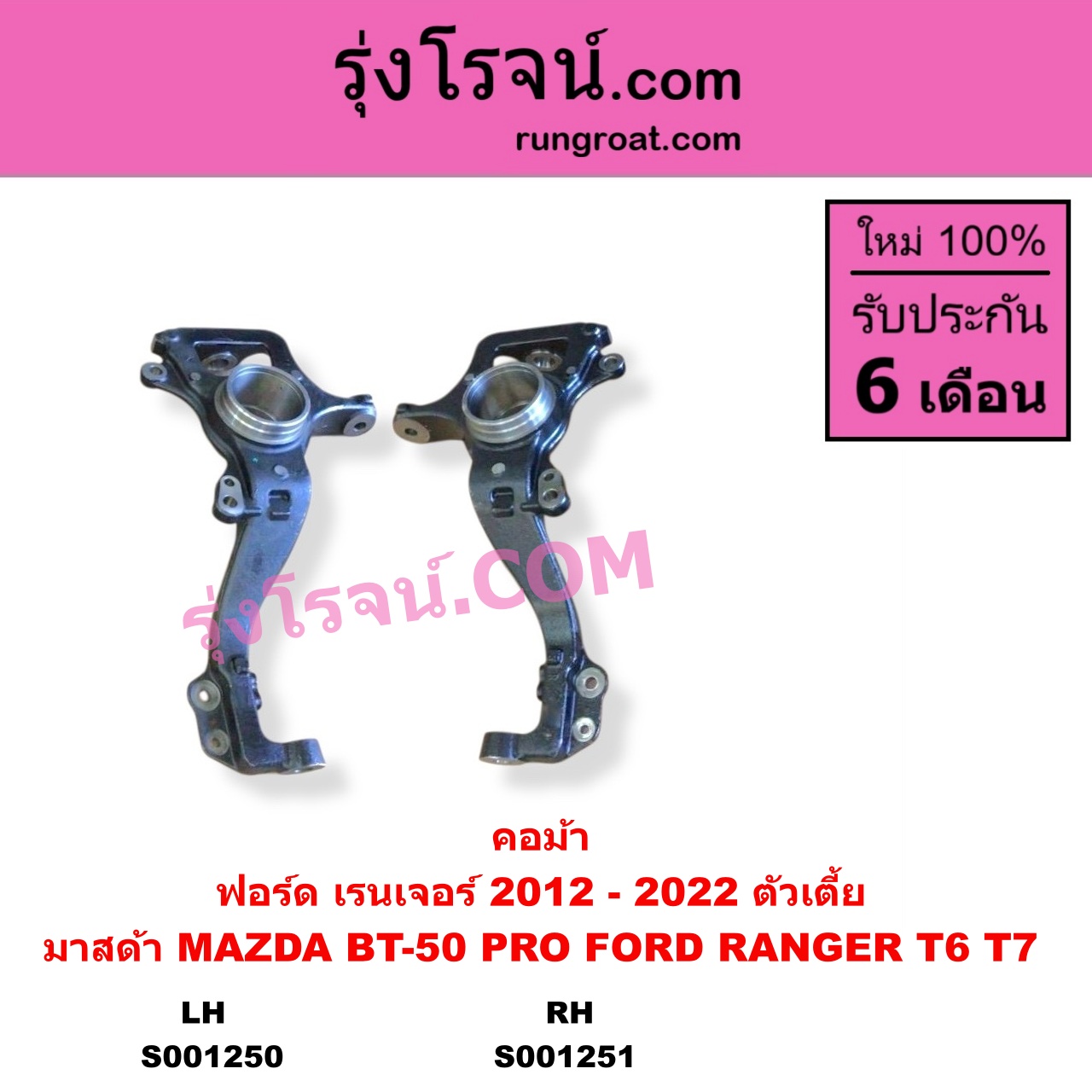 | S001250 | คอม้า | FORD (ฟอร์ด) / RANGER (เรนเจอร์ T6 T7 2012 – 2021) (ไวล์ดแทรค แร็ปเตอร์ WILD TRAK RAPTOR) , MAZDA (มาสด้า) / BT-50 PRO (บีที 50 โปร 2012 – 2020) |