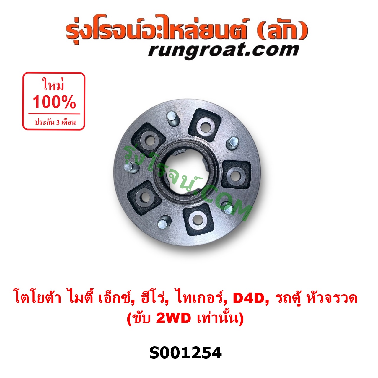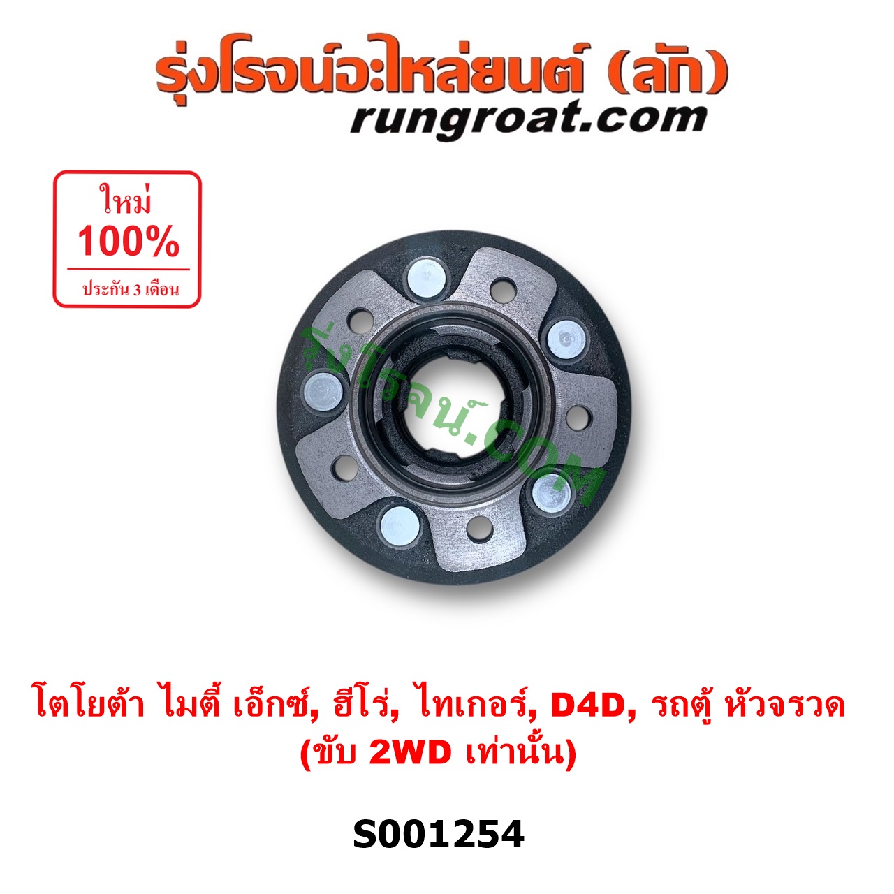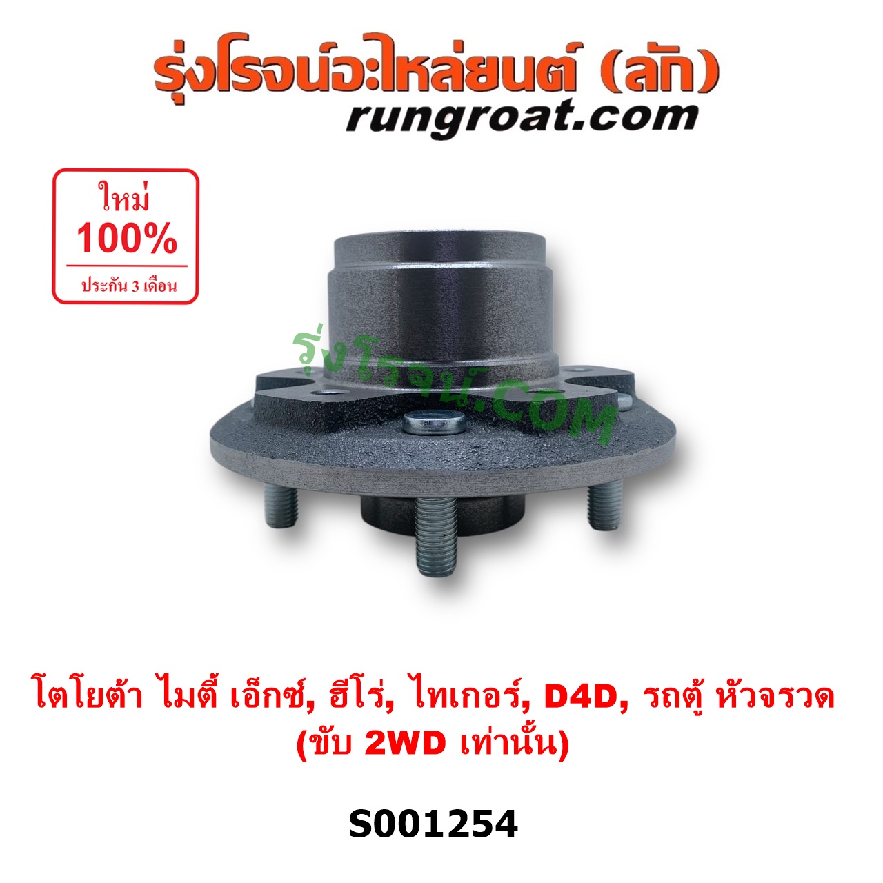 | S001254 | ดุมล้อหน้า (เฉพาะ เสื้อดุมล้อหน้า, เสื้อลูกปืนล้อหน้า) | TOYOTA (โตโยต้า) / HERO (ฮีโร่ 1886 / 1888) (LN50, LN56) , TOYOTA (โตโยต้า) / HIACE (ไฮเอซ LH112 LH125 LH130 YH184) (รถตู้หัวจรวด 3L 5L) , TOYOTA (โตโยต้า) / MTX (ไมตี้ X 92/94/96) , TOYOTA (โตโยต้า) / TIGER/TIGER D4D (ไทเกอร์ / ไทเกอร์ ดีโฟร์ดี) |