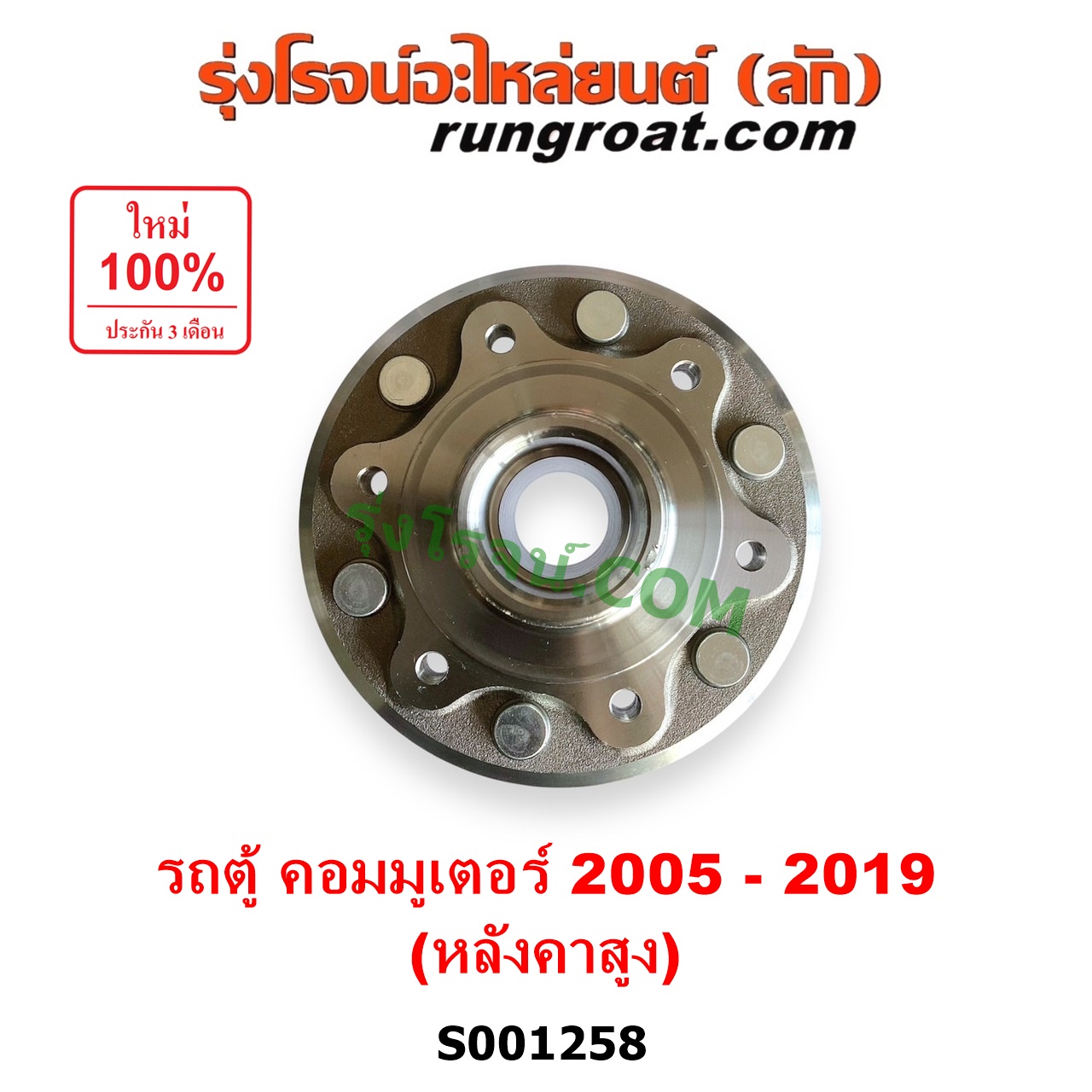 | S001258 | ดุมล้อหน้า (เฉพาะ เสื้อดุมล้อหน้า, เสื้อลูกปืนล้อหน้า) | TOYOTA (โตโยต้า) / COMMUTER (รถตู้ คอมมิวเตอร์ คอมมูเตอร์ 2005 – 2019) | (หลังคาสูง) LH, RH | ไต้หวัน (ใหม่) |
