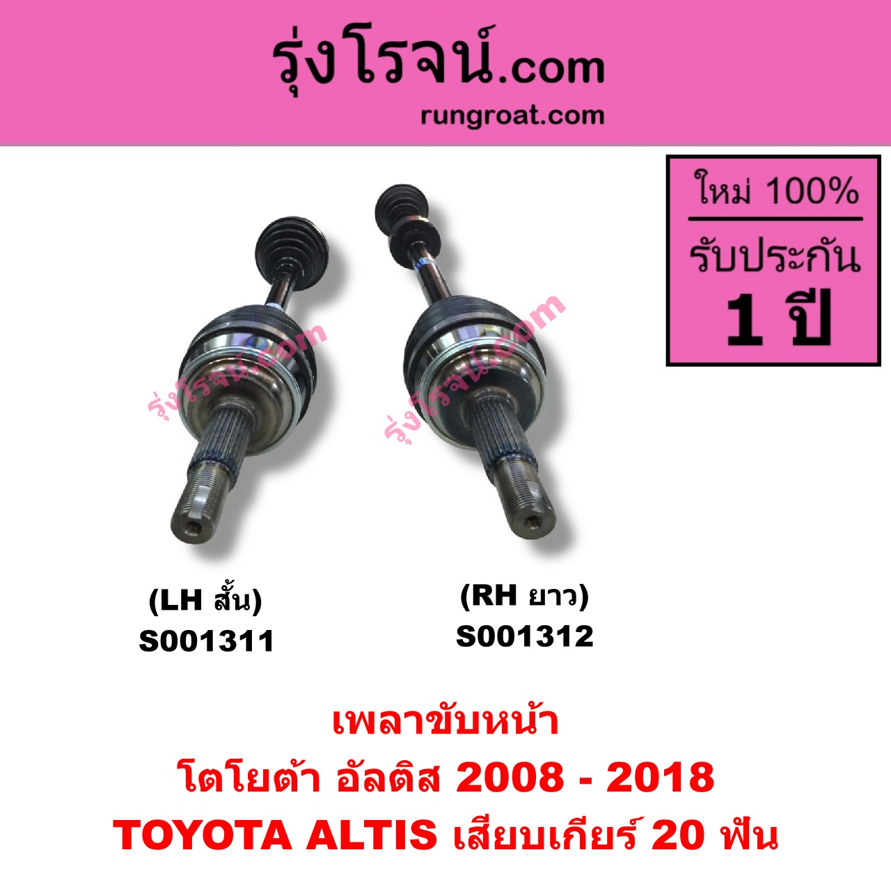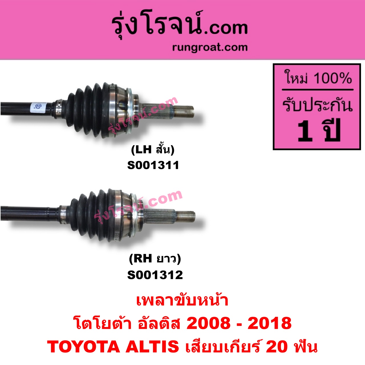 | S001311 | เพลาขับหน้า | TOYOTA (โตโยต้า) / ALTIS (อัลติส 2008 – 2013) (รุ่น 2, ดูโอ้, DUAL VVTI) , TOYOTA (โตโยต้า) / ALTIS (อัลติส 2014 – 2018) (รุ่น 3) |