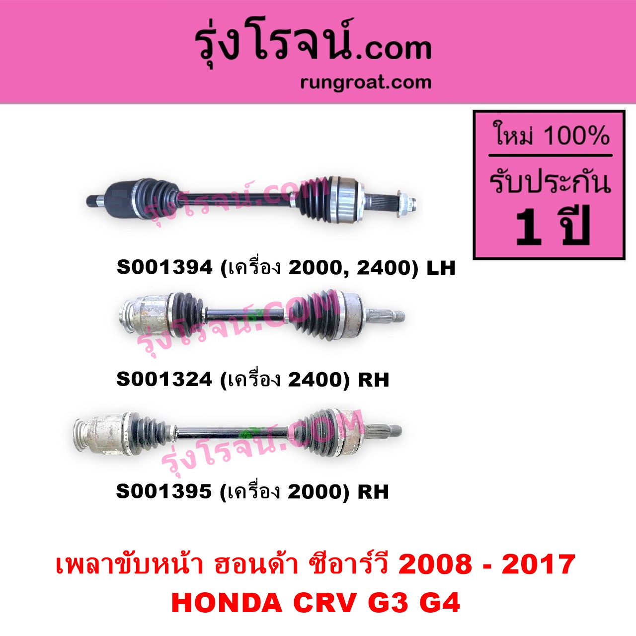 | S001324 | เพลาขับหน้า | HONDA (ฮอนด้า) / CRV (ซีอาร์วี 2008 – 2013) (G3) , HONDA (ฮอนด้า) / CRV (ซีอาร์วี 2014 – 2017) (G4) |