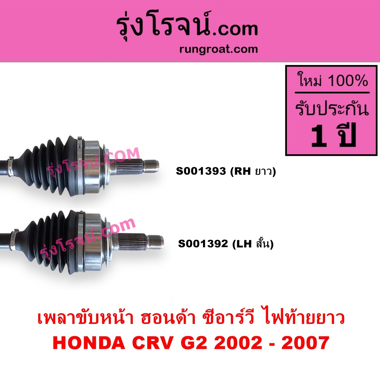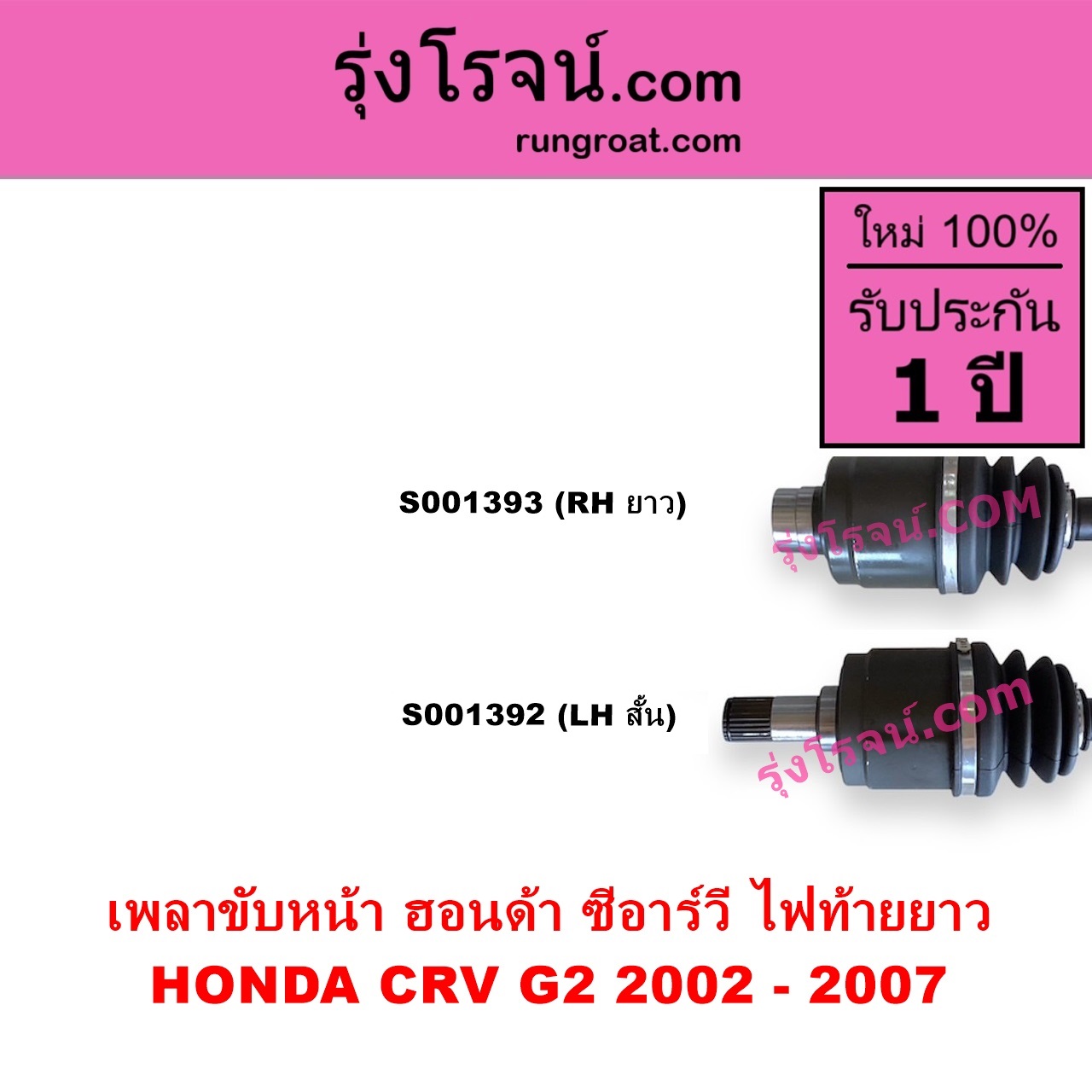 Home » สินค้า » S001392 เพลาขับหน้า HONDA ฮอนด้า CRV ซีอาร์วี 2002 – 2007 G2 ไฟท้ายยาว ABS LH สั้น เดือย