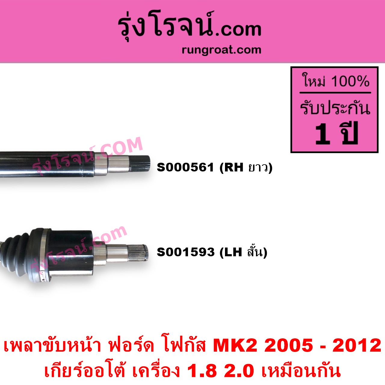 | S001593 | เพลาขับหน้า | FORD (ฟอร์ด) / FOCUS (โฟกัส 2005 – 2012) (รุ่นแรก) (MK2) | (ABS) (เกียร์ออโต้) (เครื่อง 1800, 2000 เหมือนกัน) (LH สั้น) | ไต้หวัน (ใหม่) |