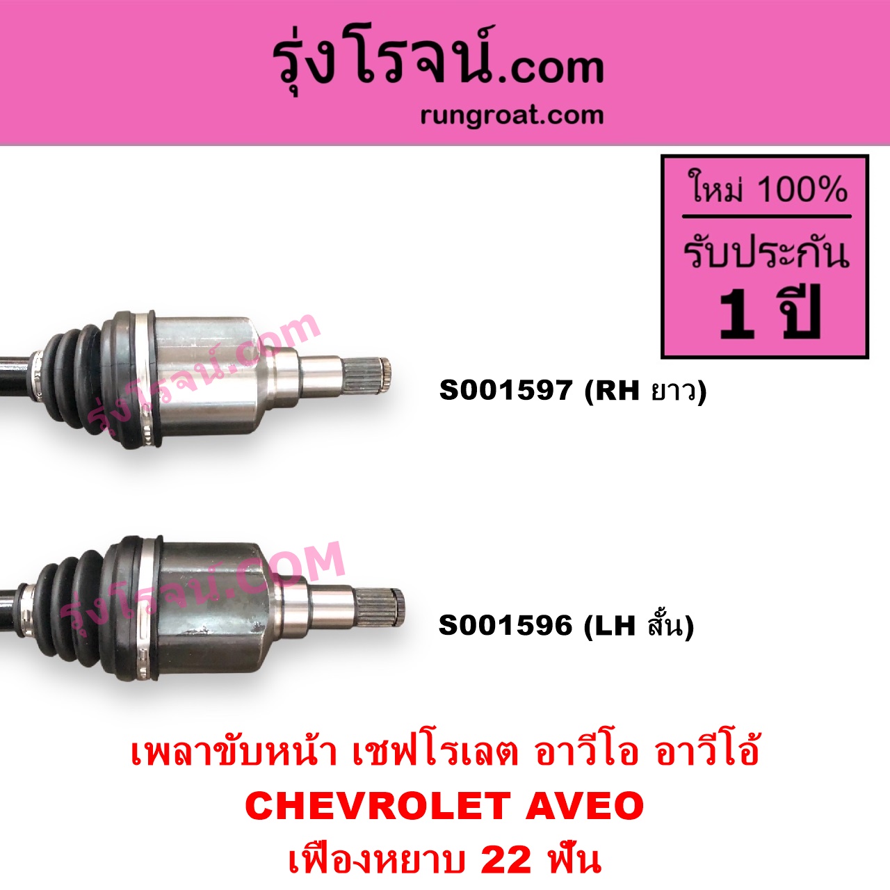 S001597 เพลาขับหน้า CHEVROLET เชฟโรเลต AVEO อาวีโอ อาวีโอ้ 2002 เสียบเกียร์ เฟืองหยาบ 22 ฟัน RH ยาว