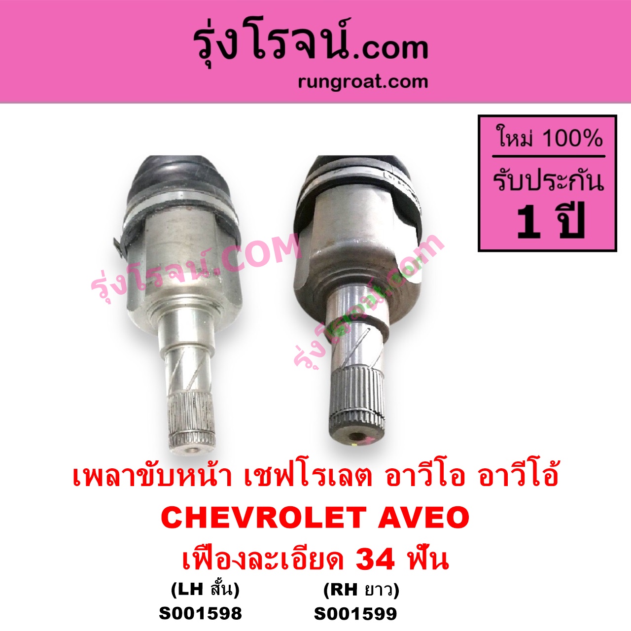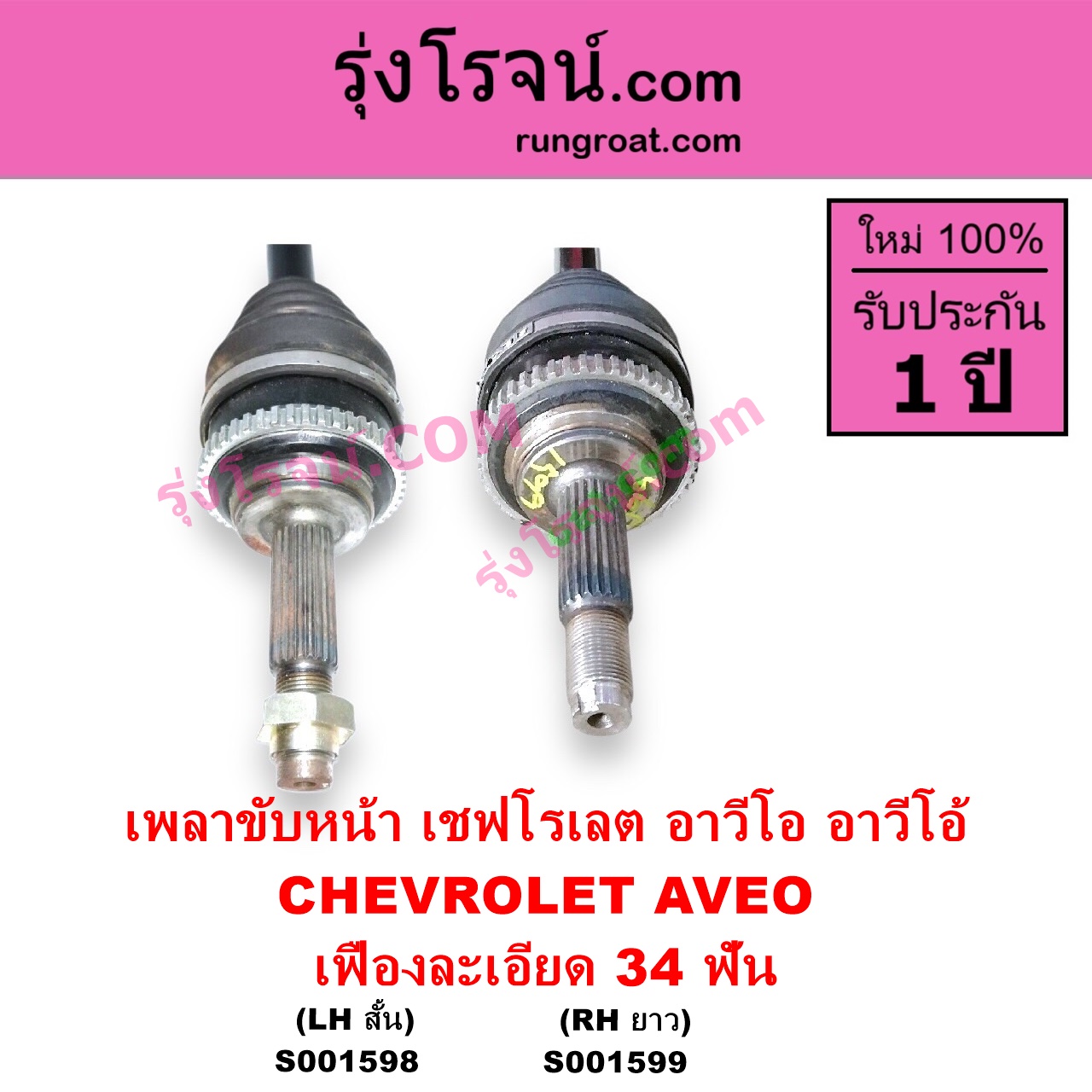 | S001598 | เพลาขับหน้า | CHEVROLET (เชฟโรเลต) / AVEO (อาวีโอ อาวีโอ้ 2002) | (เสียบเกียร์ เฟืองละเอียด 34 ฟัน) (LH สั้น) | ไต้หวัน (ใหม่) |